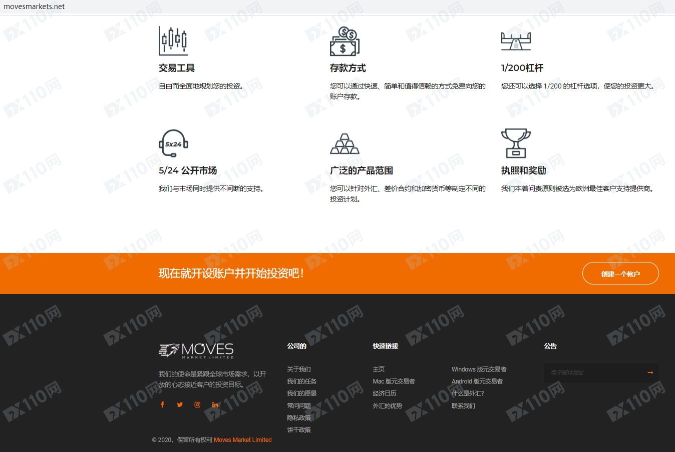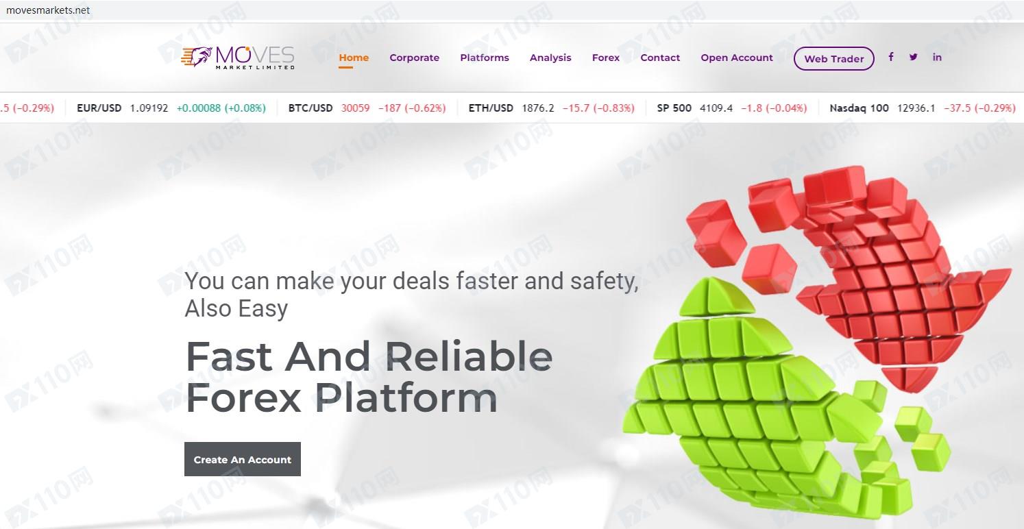 該平臺宣傳所屬Moves Market Limited,公司地址位于伯利茲,提供外匯投資交易服務。