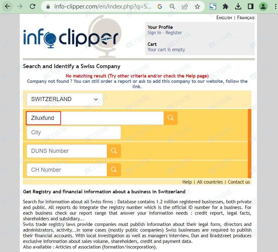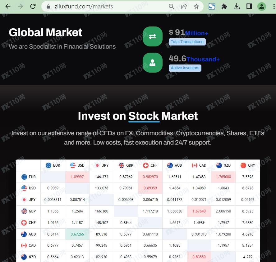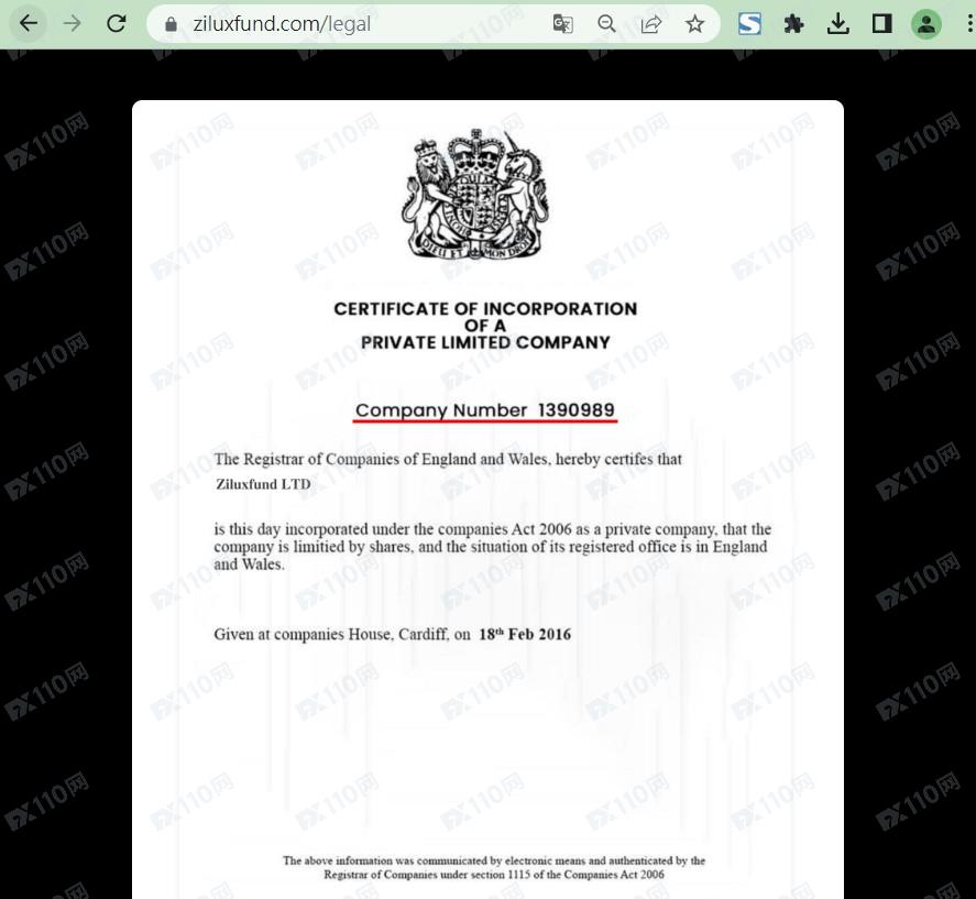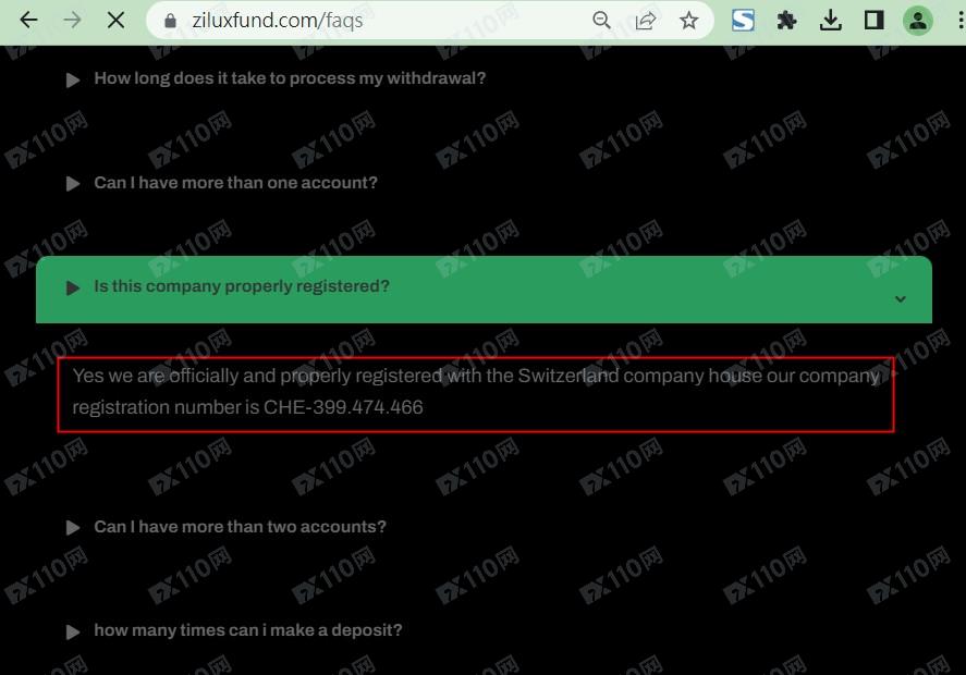 該平臺宣稱提供外匯、股指、貴金屬、加密貨幣等交易服務,在瑞士正式注冊,公司注冊號CHE-399.474.466,持有英國公司證,登記名稱Ziluxfund LTD,編號1390989,但未公布監管信息以便用戶核實。