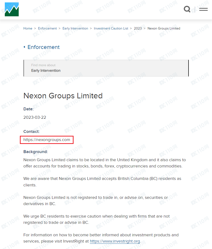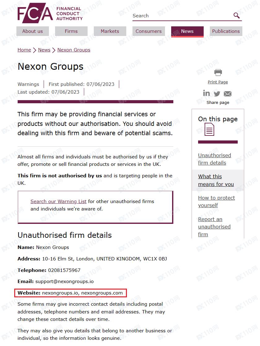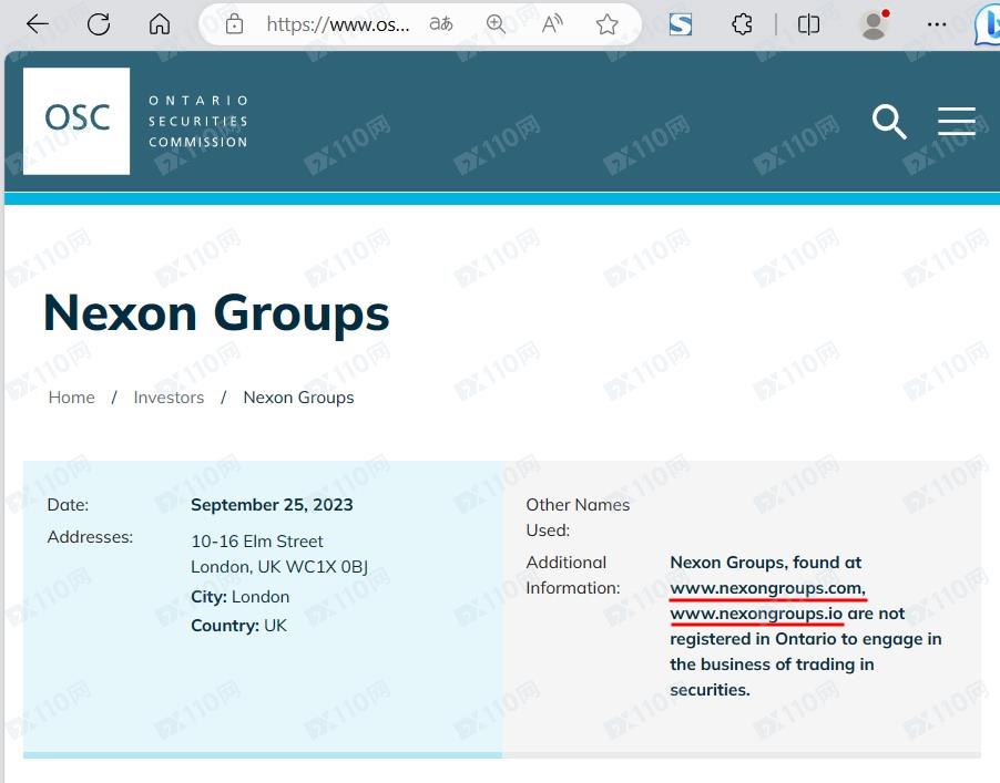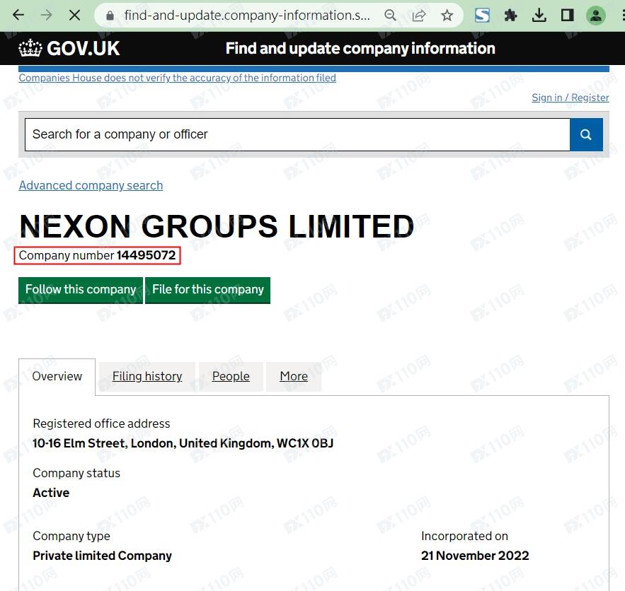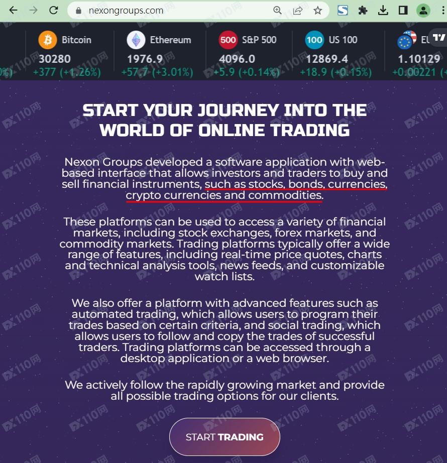 該平臺宣稱提供外匯、股票、債券、加密貨幣等交易服務,由NEXON GROUPS LIMITED運營,公司注冊于英國,注冊號14495072,但未公布監管信息以便用戶核實。