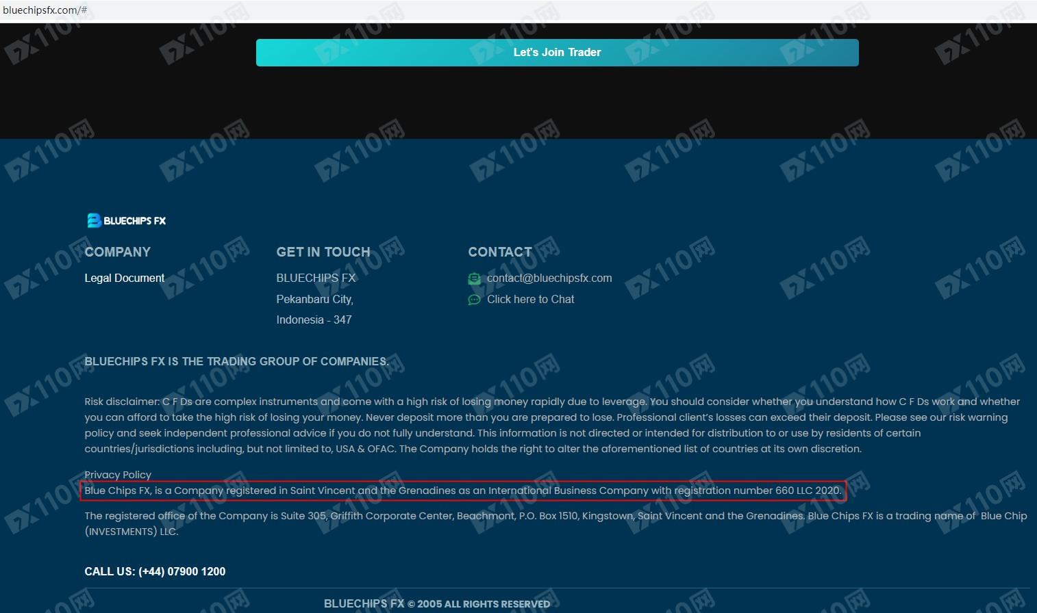 BLUECHIPS FX平臺宣傳是Blue Chip (INVESTMENTS) LLC.的交易名稱,是一家圣文森特注冊的商業公司,注冊號為660 LLC 2020,提供外匯、加密貨幣、能源、股票、指數、貴金屬等金融衍生品投資交易服務。