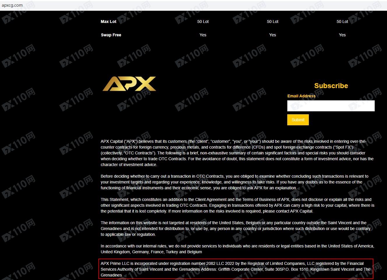 APX Prime LLC宣傳注冊于圣文森特,注冊號2082 LLC 2022,提供外匯、貴金屬等金融衍生品投資交易服務。