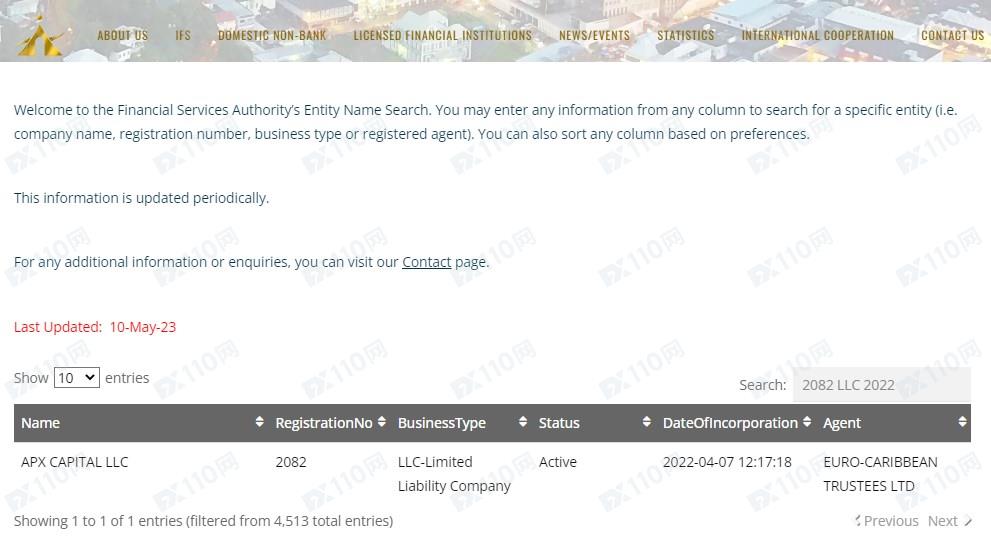 經查詢,圣文森特FSA注冊號2082 LLC 2022對應公司名稱為APX CAPITAL LLC,但請注意,圣文森特FSA機構不監管金融衍生品經紀商的業務,許多人因聲稱獲得圣文森特當局授權的平臺而受騙,請投資者們謹慎!