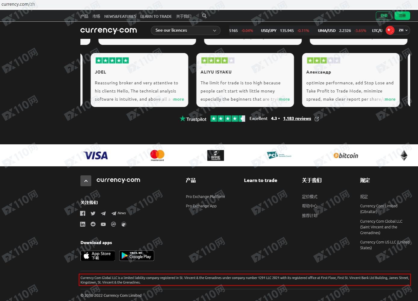 currency.com平臺宣稱所屬Currency Com Global LLC,是一家圣文森特注冊公司,注冊號為1291 LLC 2021,提供加密貨幣投資交易服務。