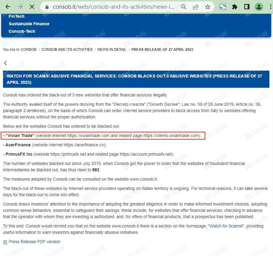 此外,該平臺非法提供金融服務,已被意大利金融市場監管局(CONSOB)列入警示,請遠離!