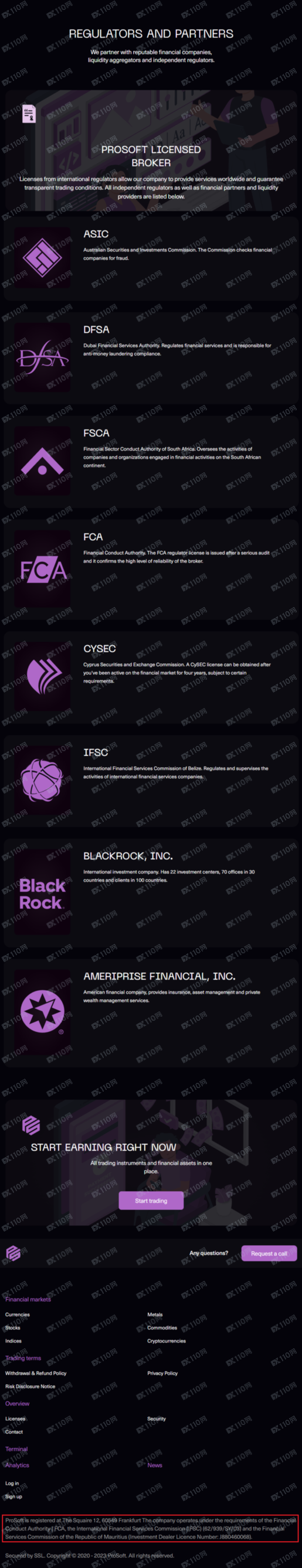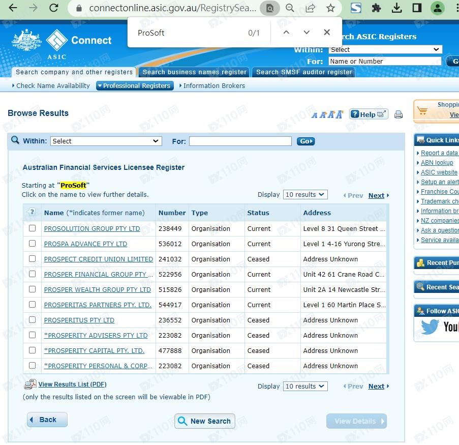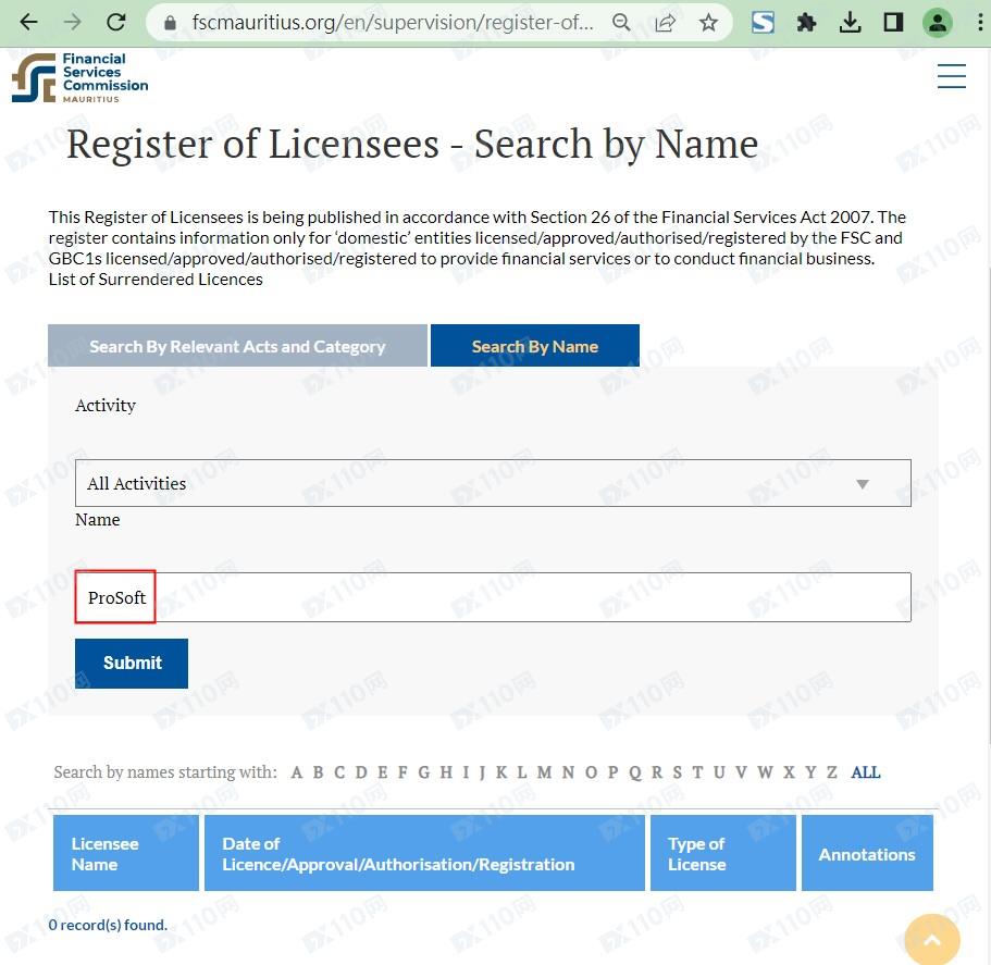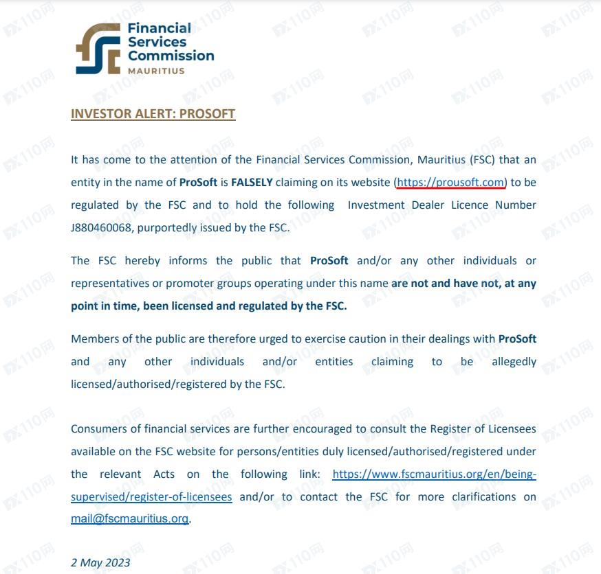 我們在澳大利亞ASIC、迪拜DFSA、南非FSCA、英國FCA、伯利茲FSC(現已更名)、毛里求斯FSC也查無ProSoft,顯然該平臺是虛假宣傳,根本不受監管。