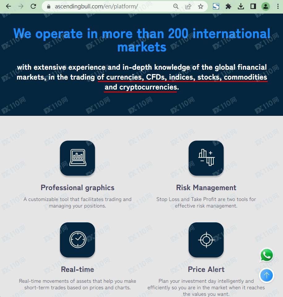 該平臺宣稱提供外匯、股指、商品、加密貨幣等交易服務,但未公布公司名稱、具體位置以及任何監管信息以便用戶核實。