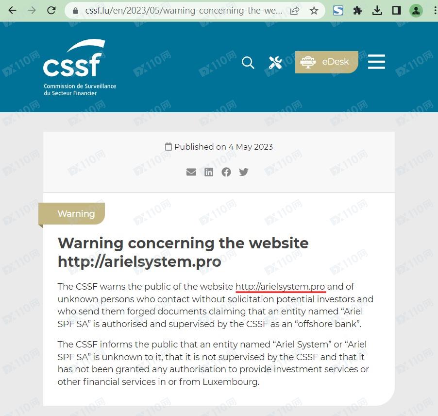 此外,該平臺未經授權即非法提供金融服務,已被盧森堡金融業管理局(CSSF)列入警示,請遠離!