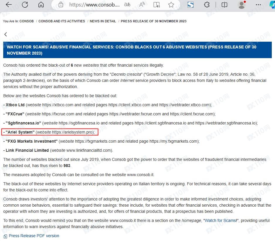 2023年12月8日新增意大利金融市場監管局(CONSOB)警示圖如下:
