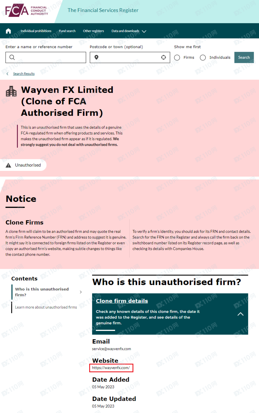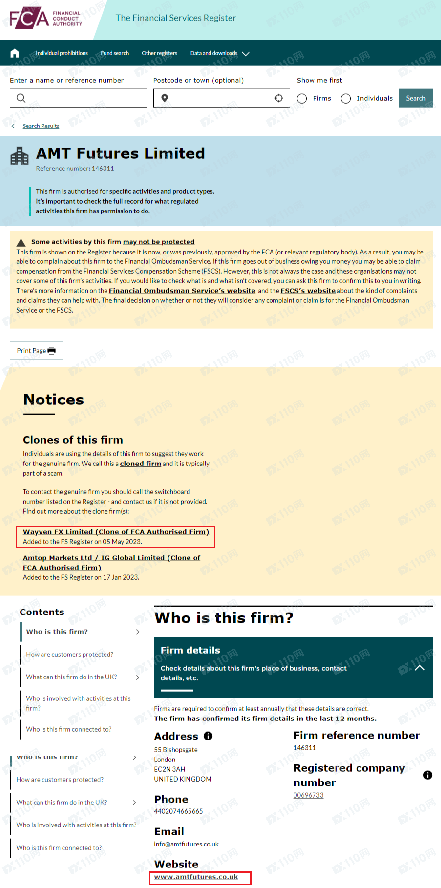 我們在英國FCA查到的對應公司名稱為AMT Futures Limited,登記網址www.amtfutures.co.uk,皆和Wayven FX平臺信息不符,且在其頁面中已標示網址https://wayvenfx.com,是冒充監管,請勿入金交易。