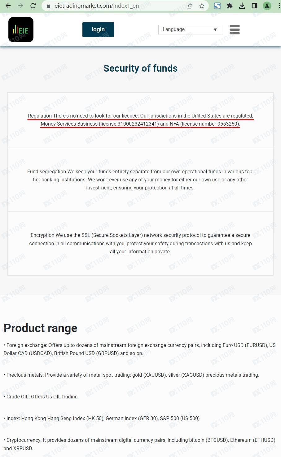 該平臺宣稱提供外匯、股指、貴金屬、加密貨幣等交易服務,總部位于美國,具金融服務資質,受美國金融機構MSB(許可證號31000232412341)和美國全國期貨協會NFA(許可證號0553250)監管。