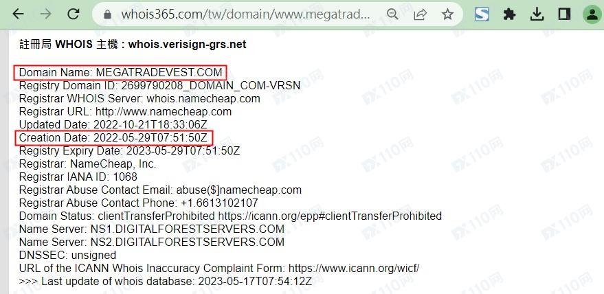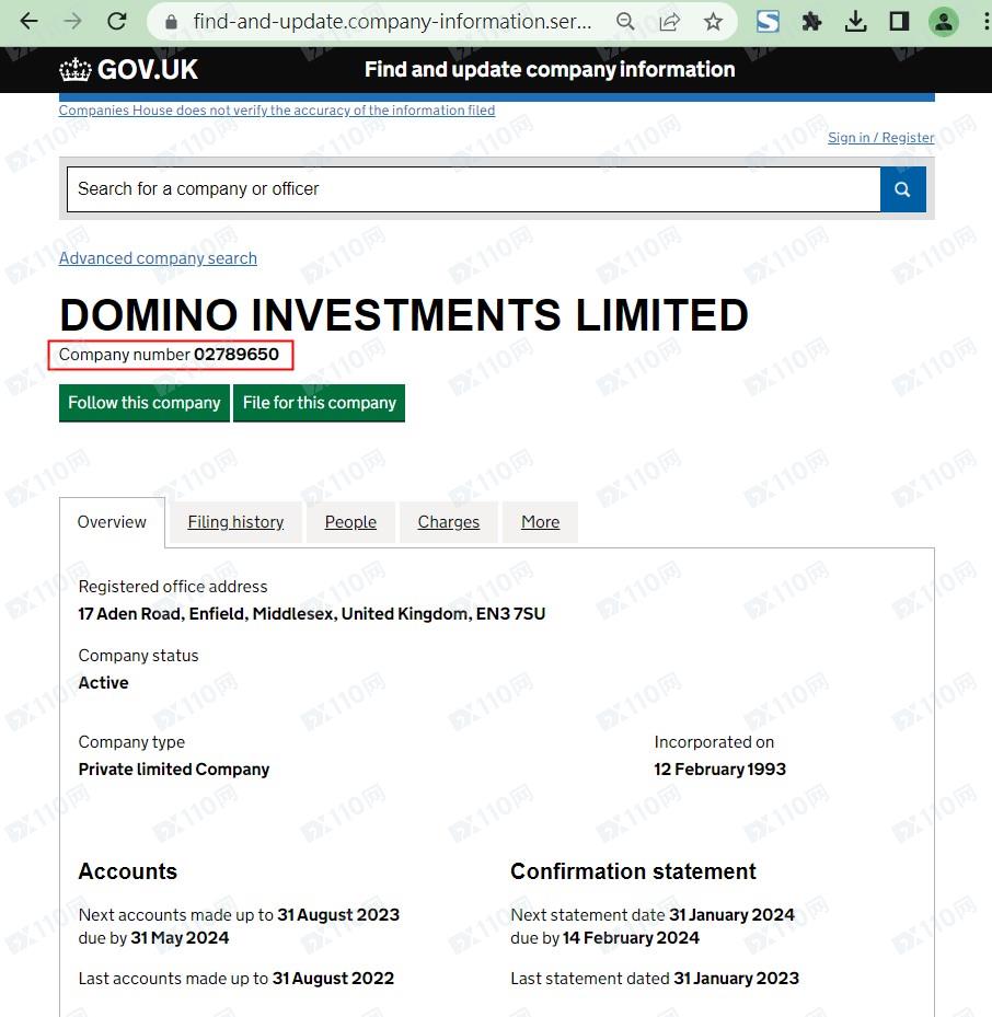 我們在英國公司注冊頁查到的對應名稱為DOMINO INVESTMENTS LIMITED,和Mega Tradevest平臺信息不符。