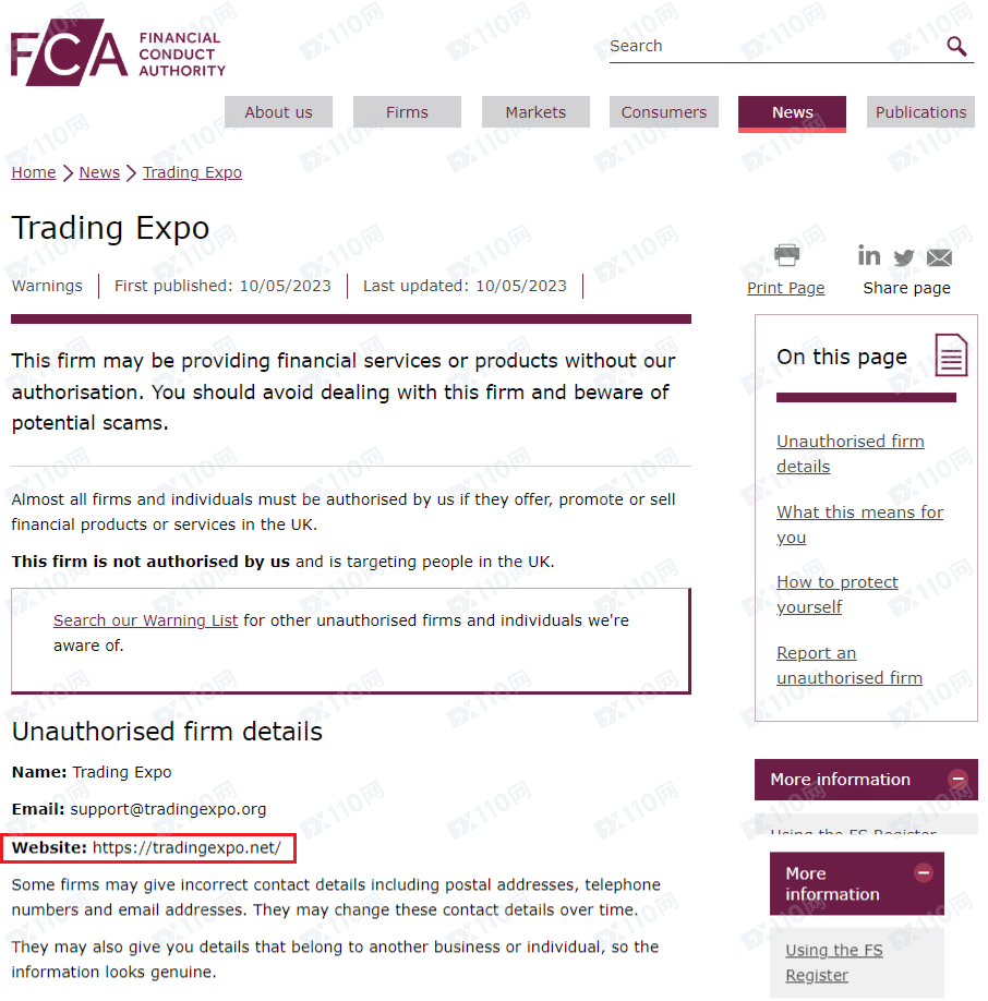 此外,該平臺未經授權即非法提供金融服務,已被英國金融行為監管局(FCA)列入警示,請遠離!