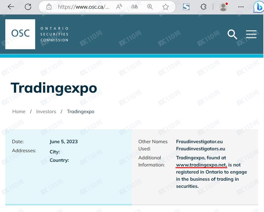 2023年6月16日新增安大略省證券委員會(OSC)警示圖如下: