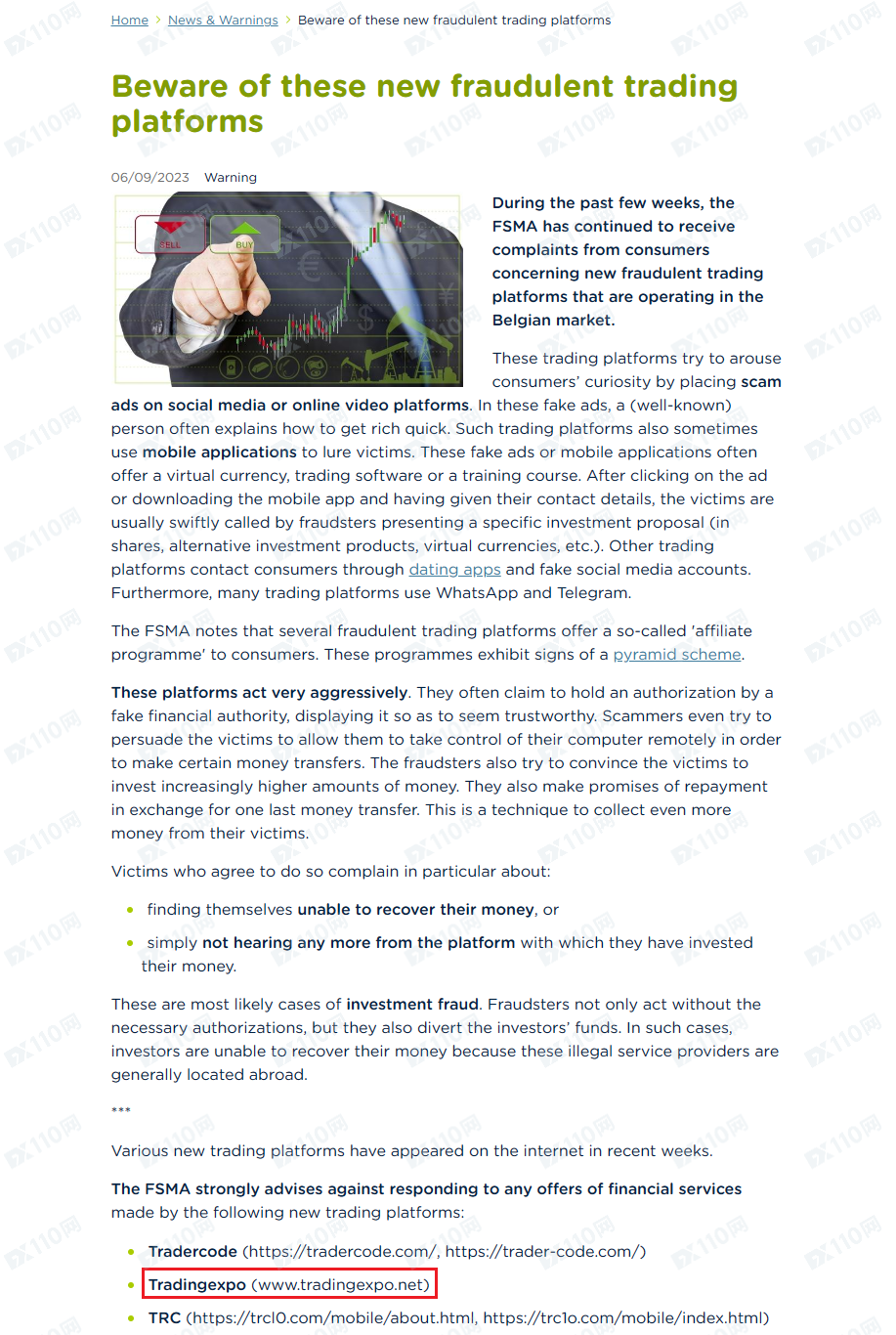 2023年9月14日新增比利時金融服務市場管理局(FSMA)警示圖如下: