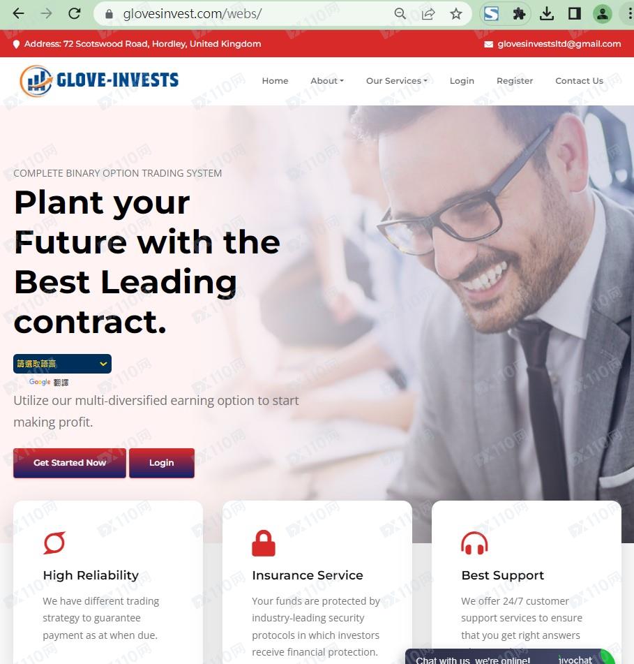 該平臺宣稱提供外匯、股指、加密貨幣等差價合約交易服務,公司名稱Gloves Invests Limited,位于英國,但未公布監管信息以便用戶核實。