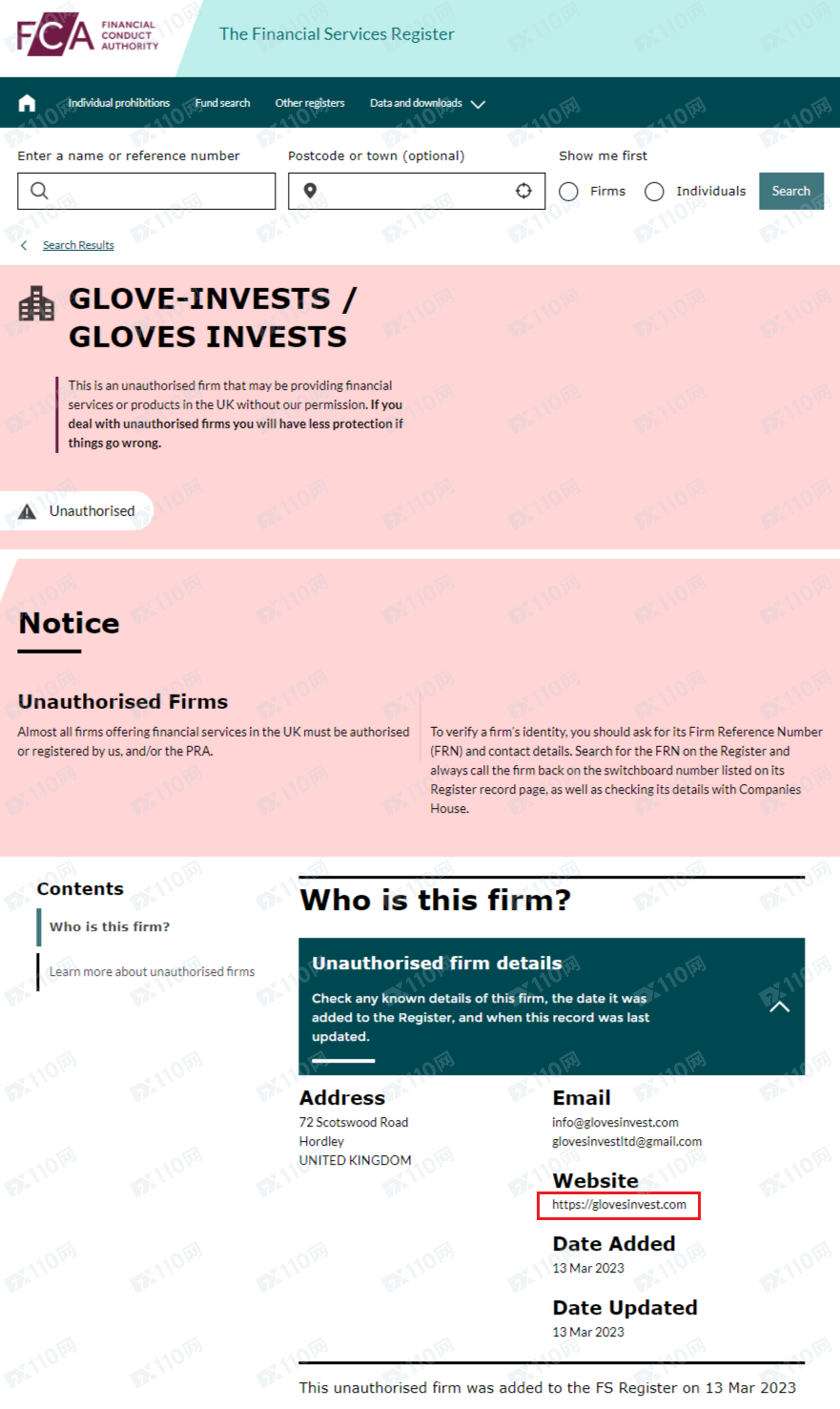 我們在英國公司注冊頁查無對應的公司名稱,在英國金融行為監管局(FCA)查到的信息,該平臺未經授權即非法提供金融服務,已被列入警示,請遠離!