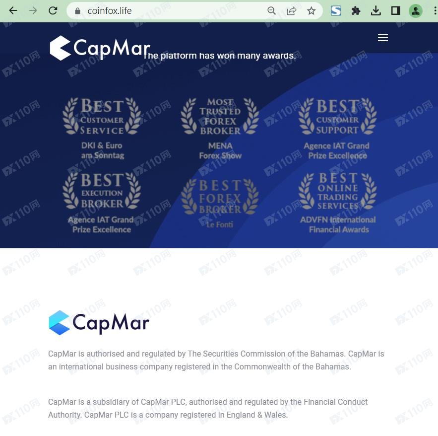 該平臺宣稱提供外匯交易服務,受巴哈馬證券委員會(SCB)監管,以及CapMar是CapMar PLC的子公司,該公司注冊于英國,由英國金融行為監管局授權和監管。