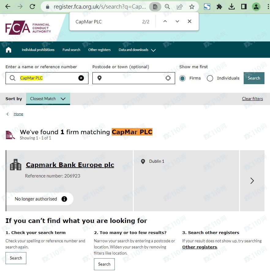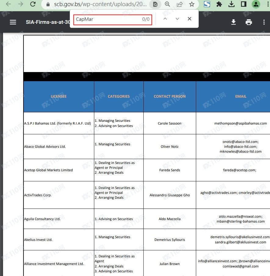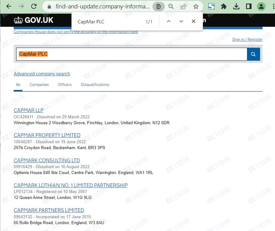 我們在巴哈馬SCB查無CapMar,在英國公司注冊頁及英國FCA也同樣查無對應的子公司名稱,顯然該平臺是虛假宣傳,根本無任何監管。