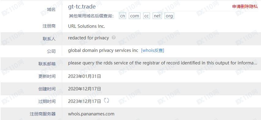 網站地址 https://www.gt-tc.trade