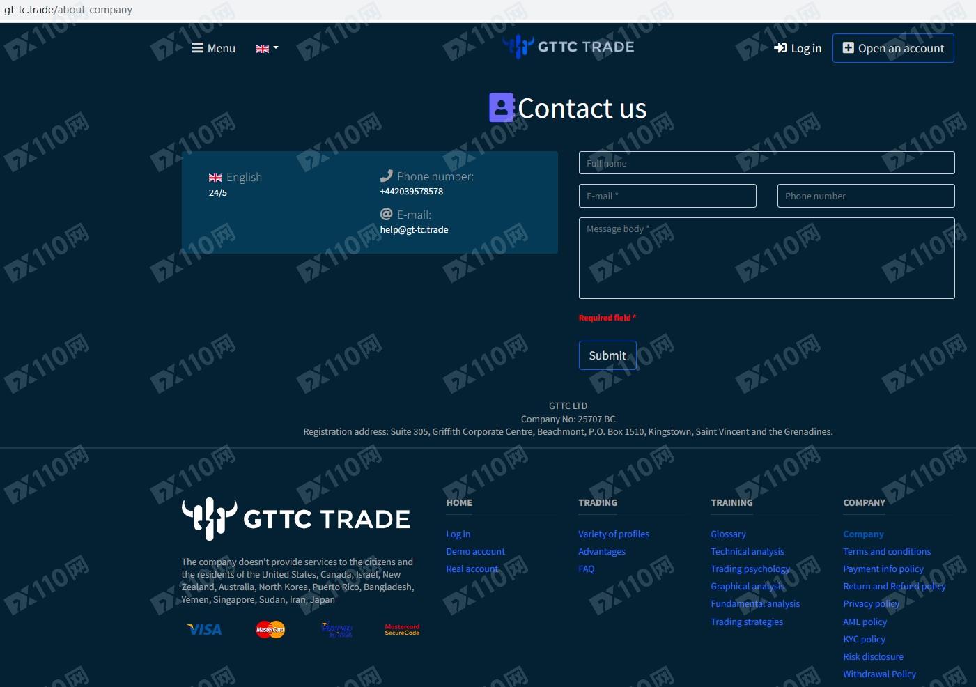 GTTC TRADE平臺宣傳所屬GTTC LTD,是一家外匯經紀商,注冊地址位于圣文森特,注冊號為25707 ВС。
