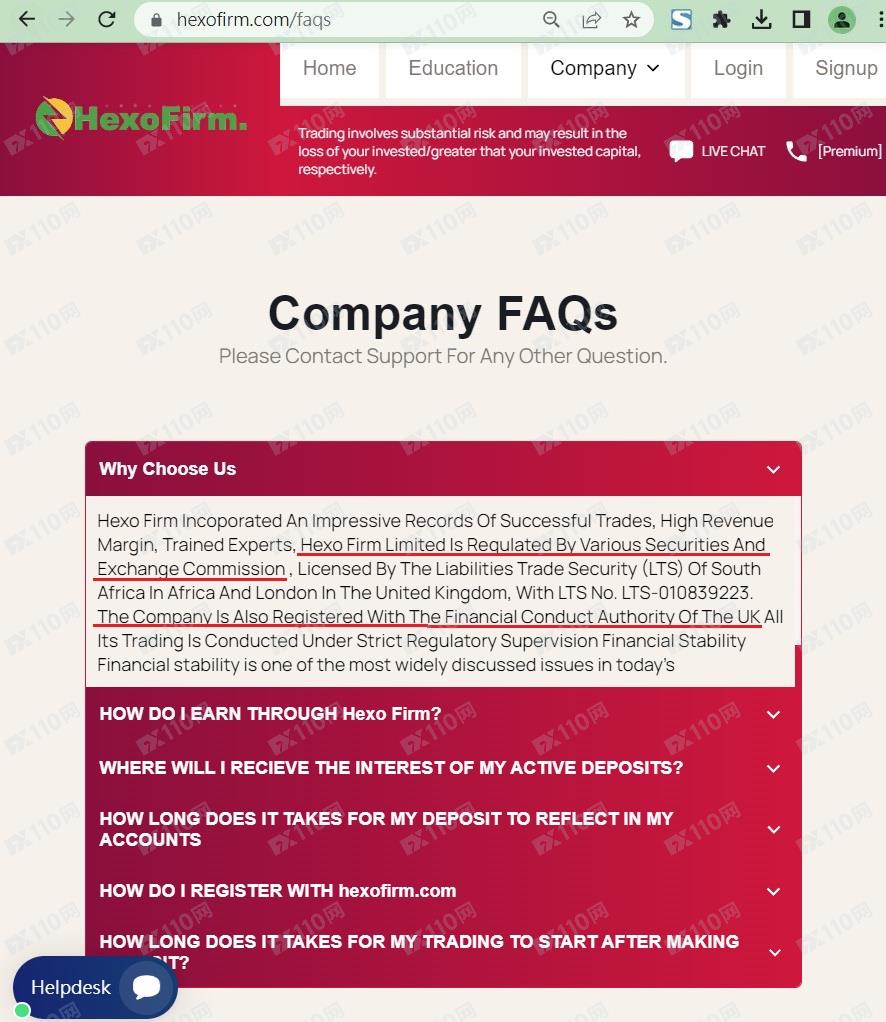 該平臺宣稱提供外匯、股指、商品等差價合約交易服務,Hexo Firm Limited受各種證券交易委員會以及英國金融行為監管局監管。