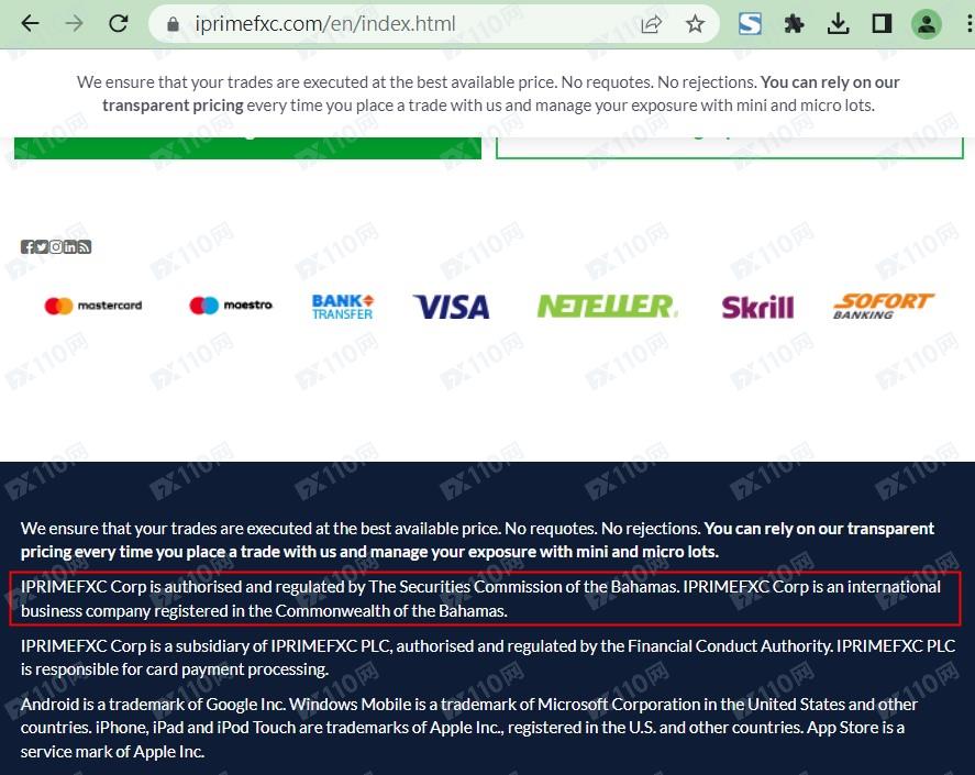 該平臺宣稱提供外匯、股指、商品等交易服務,IPRIMEFXC Corp是一家在巴哈馬注冊的國際商業公司,受巴哈馬證券委員會(SCB)監管,網頁中并標示IPRIMEFXC Australia Pty Ltd受澳大利亞證券及投資委員會(ASIC)監管,注冊號436416、Trademax Global Limited受瓦努阿圖金融服務委員會(VFSC)監管,注冊號40356。