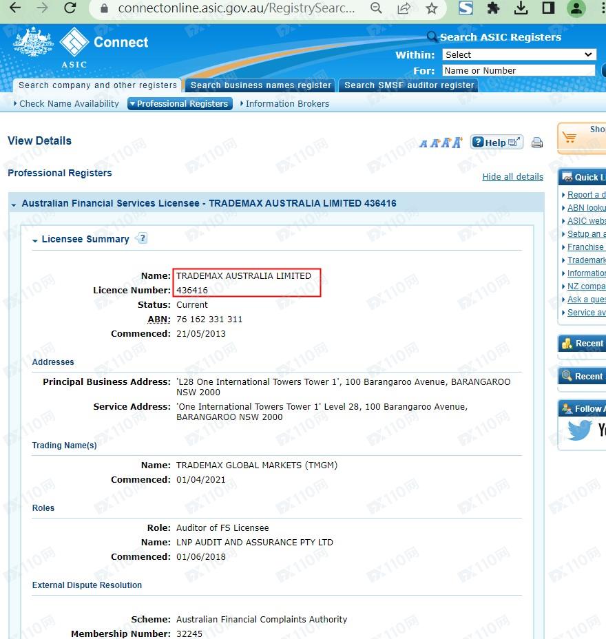我們在巴哈馬SCB及澳大利亞ASIC查無對應的公司名稱,而ASIC注冊號的對應名稱為TRADEMAX AUSTRALIA LIMITED,也和平臺標示的信息不符。