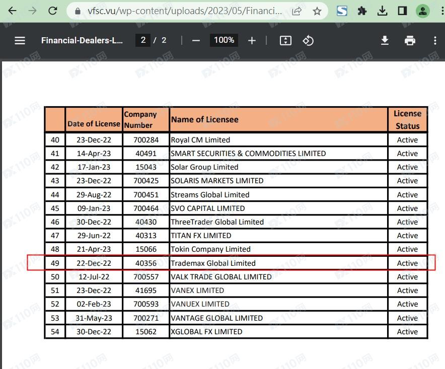 在瓦努阿圖VFSC有查到Trademax Global Limited,對應證號40356,但這不代表是IPRIMEFXC平臺的監管,兩者無關聯,顯然該平臺是虛假宣傳,根本無任何監管。