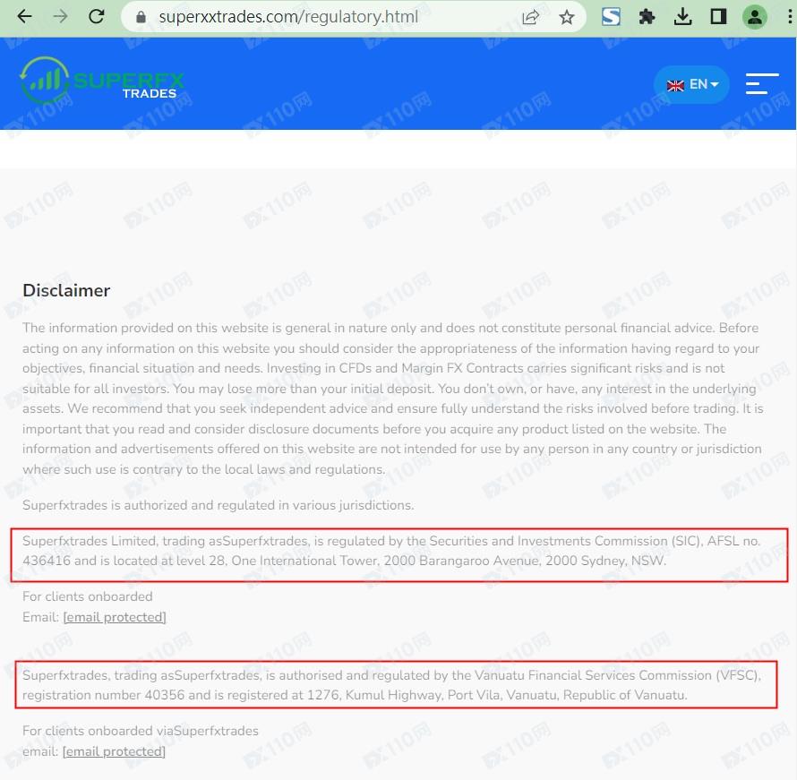 該平臺宣稱提供外匯、股指、商品等交易服務,Superfxtrades Corp是一家在巴哈馬注冊的國際商業公司,受巴哈馬證券委員會(SCB)監管,網頁中并標示Superfxtrades Limited受澳大利亞證券及投資委員會(ASIC)監管,編號436416、Superfxtrades受瓦努阿圖金融服務委員會(VFSC)監管,注冊號40356。