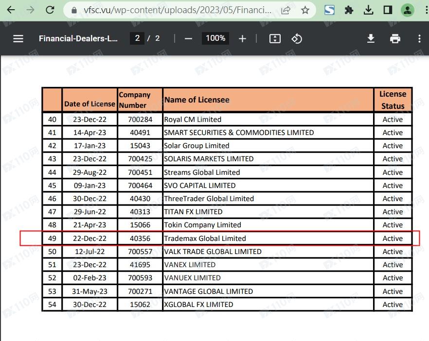 在瓦努阿圖VFSC有查到Trademax Global Limited,對應證號40356,但這不代表是Superfxtrades平臺的監管,兩者無關聯,顯然該平臺是虛假宣傳,根本無任何監管。