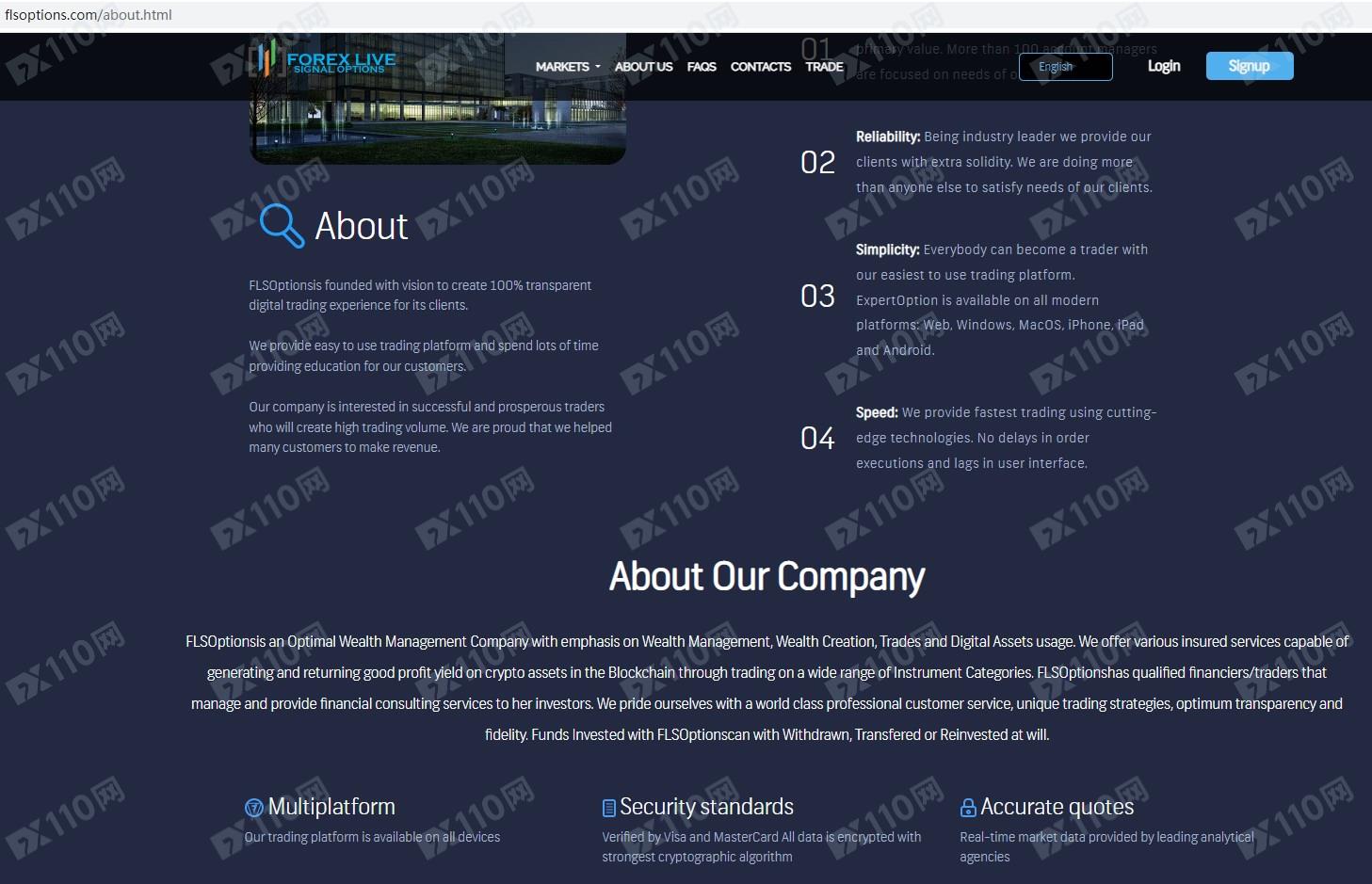 FLSOptions平臺宣稱是一家財富管理公司,專注于財富管理、財富創造、交易和數字資產,還提供外匯、指數、貴金屬等金融衍生品投資交易服務,但并未獲得任何金融監管局的授權許可。