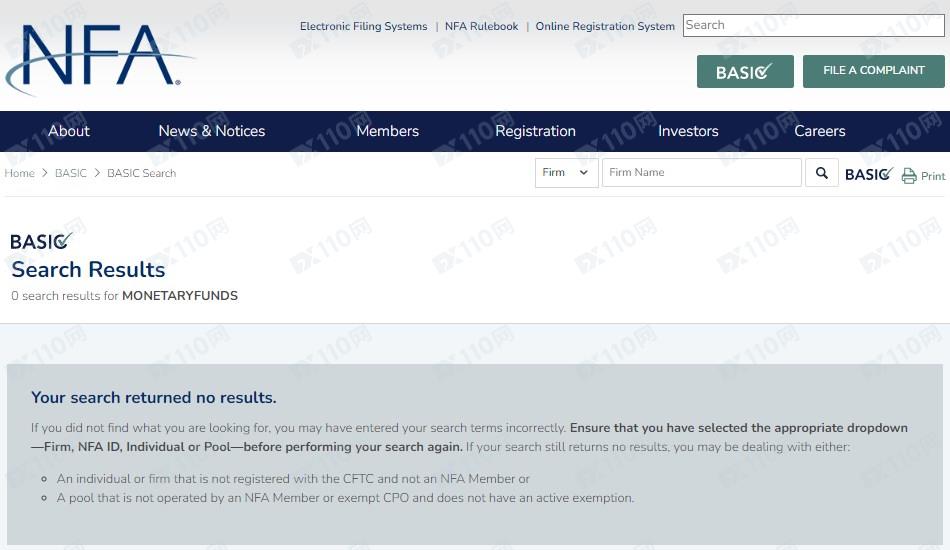 經查詢,在美國NFA并沒有這家平臺的登記,顯然不受監管!