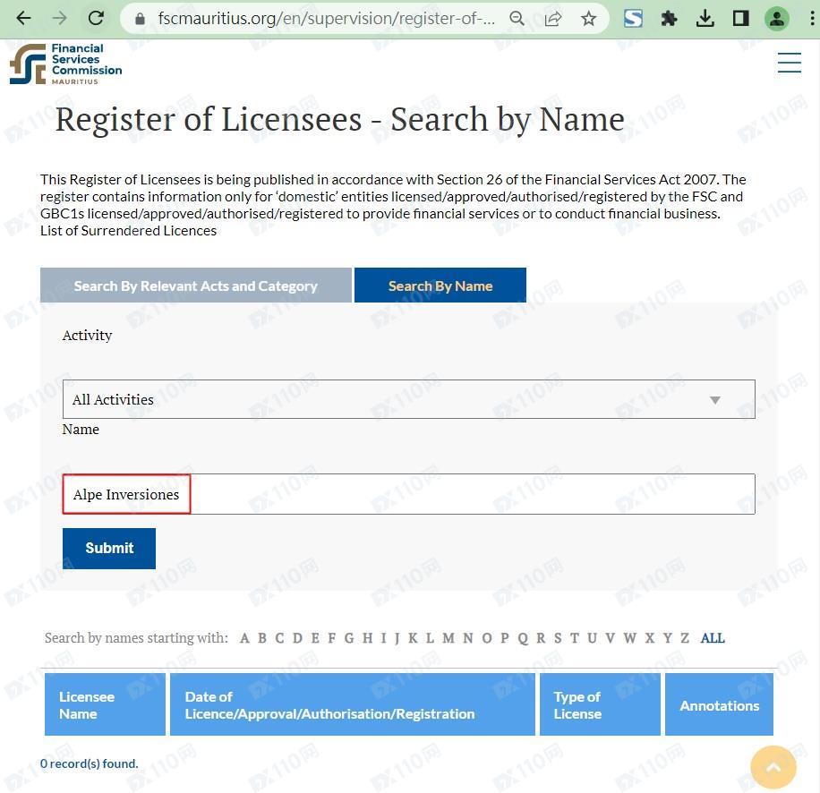 我們在伯利茲FSC(現已更名)、毛里求斯FSC皆查無資料。