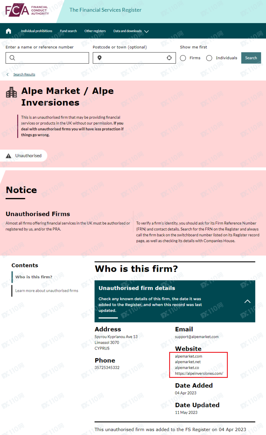 在英國金融行為監管局(FCA)查到的信息,該公司未經授權即非法提供金融服務,已被列入警示,請遠離!