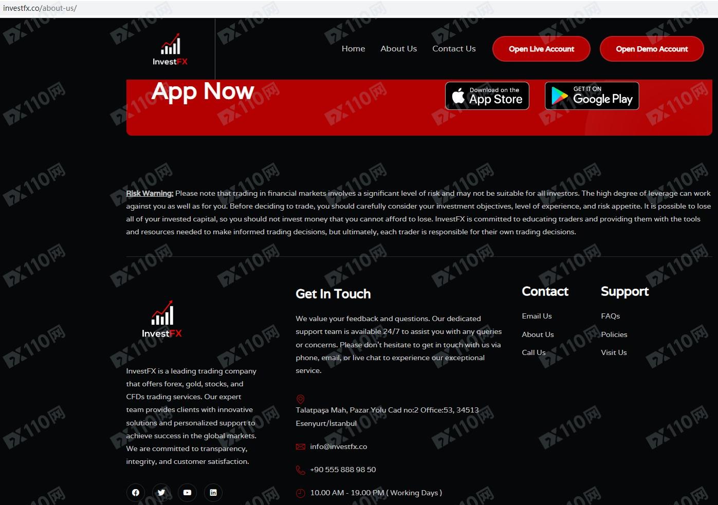 InvestFX平臺自稱是一家位于土耳其的交易商,提供外匯、股票、指數、商品、差價合約、加密貨幣等金融衍生品投資交易服務,但并未獲得任何金融監管局的授權許可。