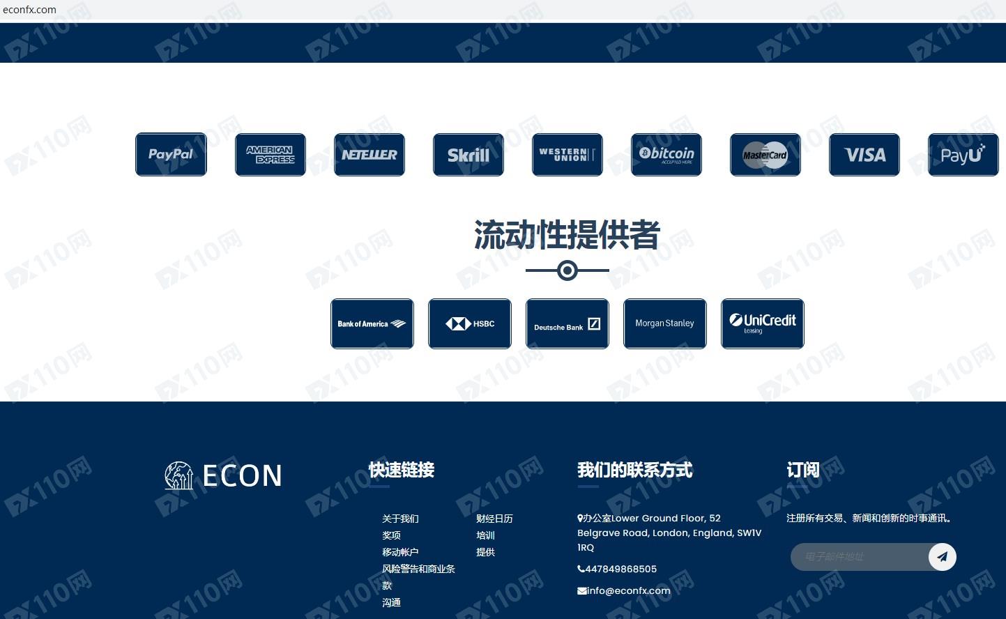 Econ FX平臺宣傳是一家位于英國在線交易提供商,提供外匯、差價合約、指數、貴金屬、能源、加密貨幣等金融衍生品投資交易服務。