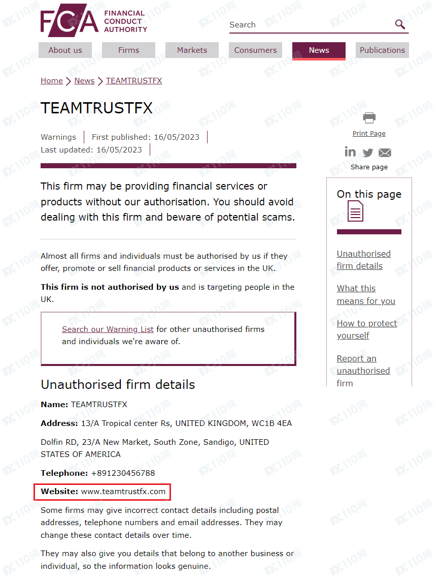 此外,該平臺未經授權即非法提供金融服務,已被英國金融行為監管局(FCA)列入警示,請遠離!