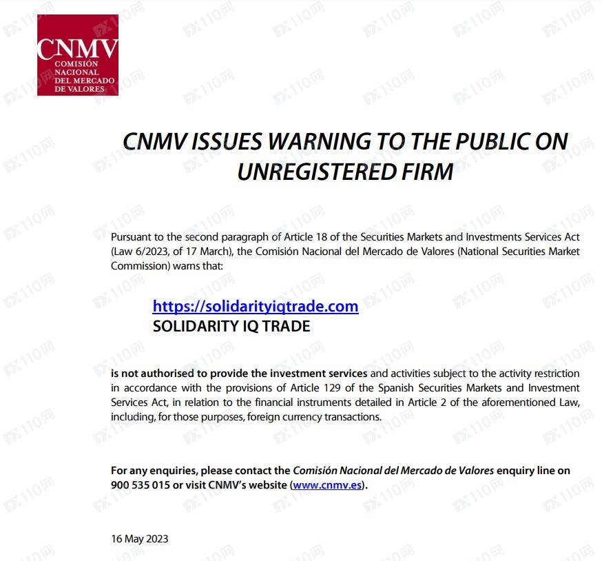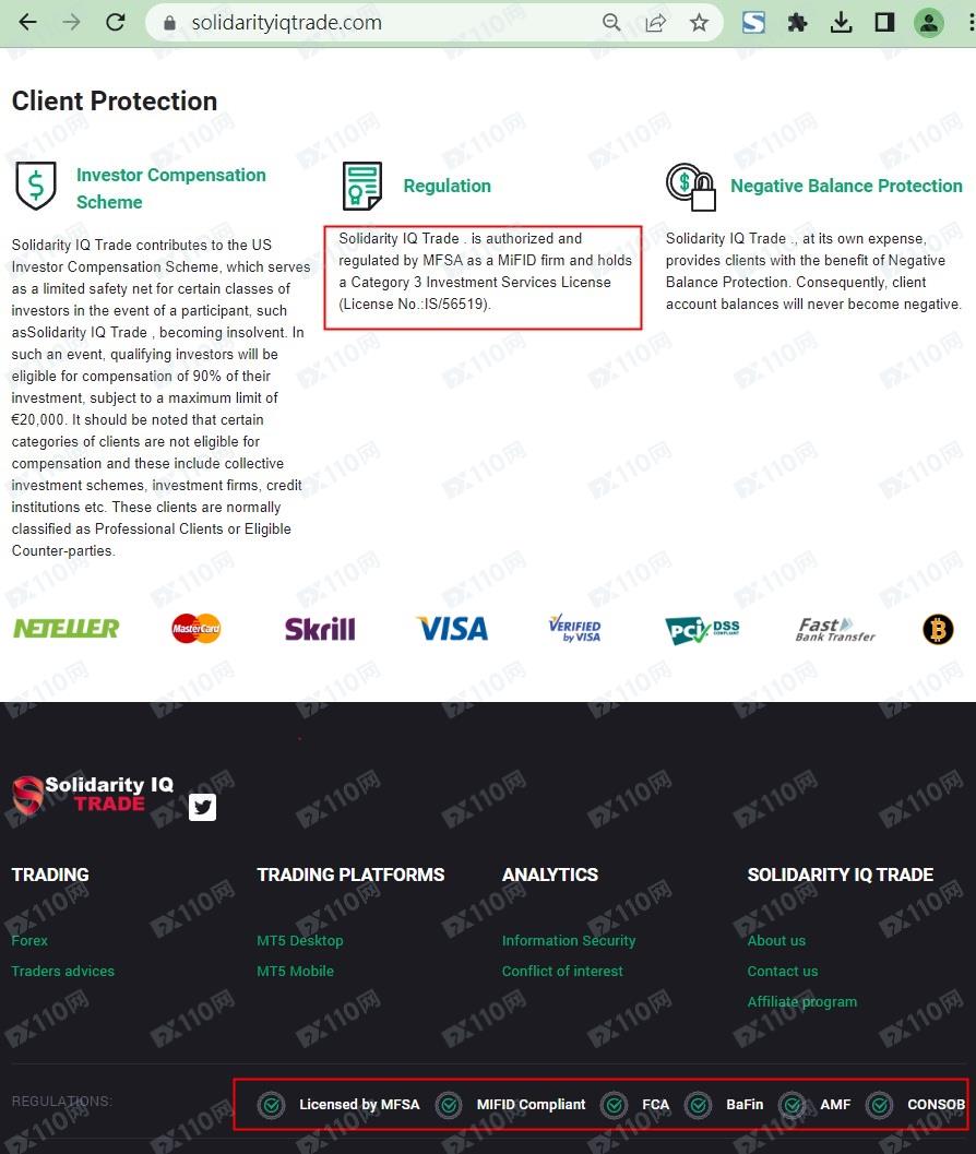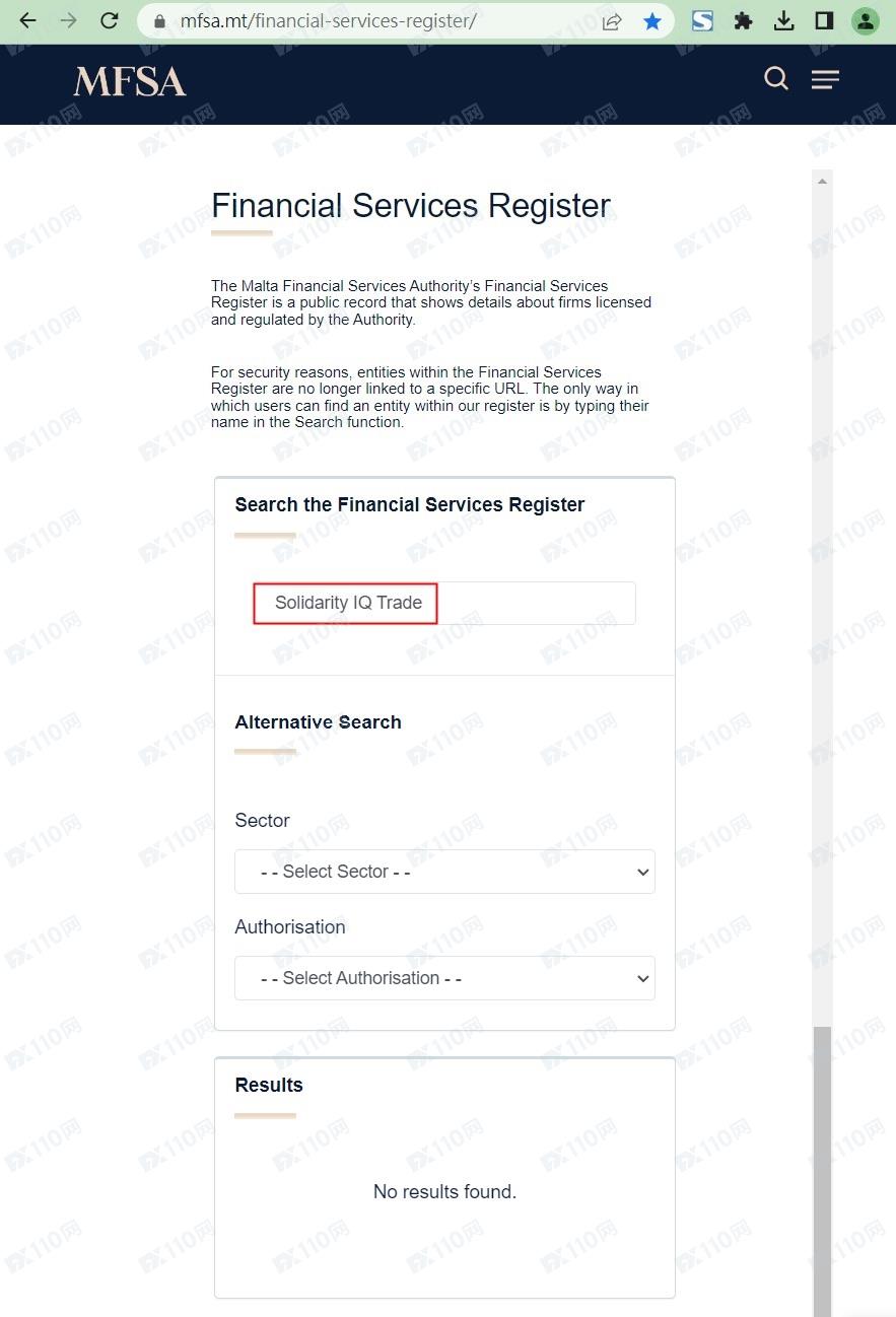 請注意,MFSA為馬耳他金融服務局的機構縮寫,我們在馬爾他MFSA查無Solidarity IQ Trade,顯然該平臺是虛假宣傳,請勿入金交易。