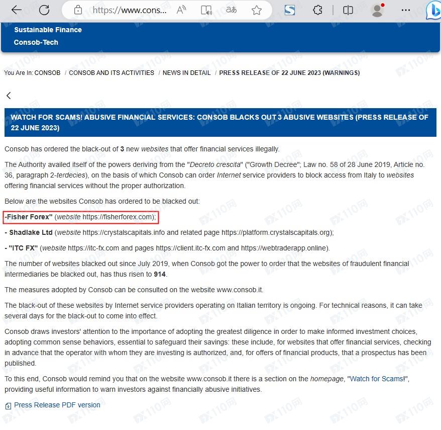 2023年7月5日新增意大利金融市場監管局(CONSOB)警示圖如下: