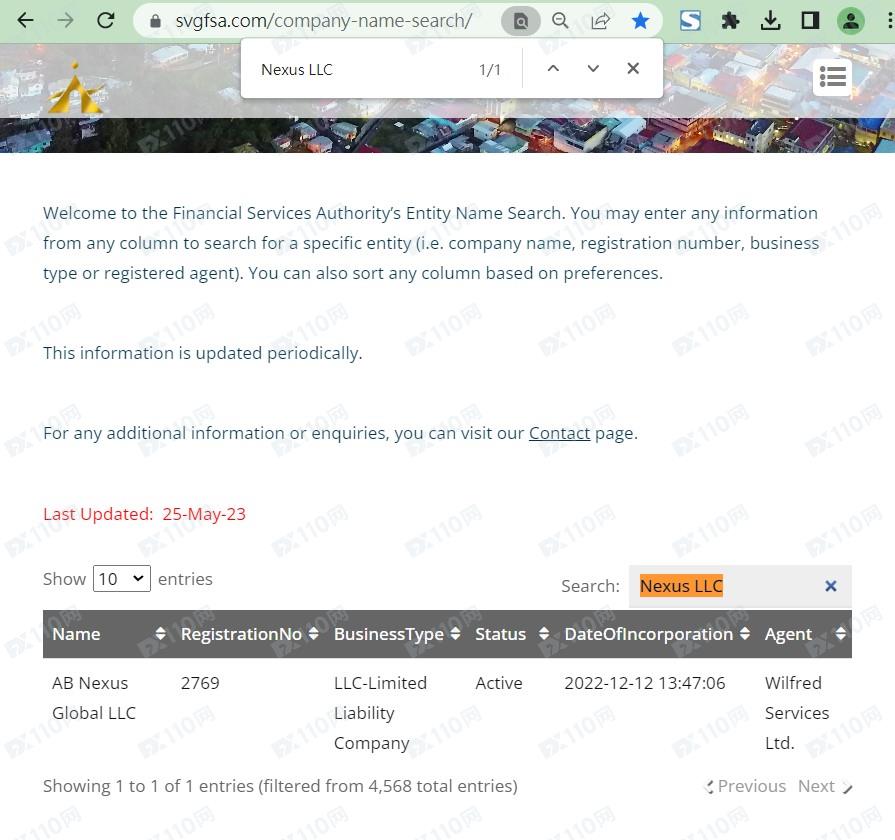 該平臺宣稱提供外匯、股指、商品、加密貨幣等交易服務,公司名稱Nexus LLC,注冊于圣文森特和格林納斯丁,編號REG 1070 LLC 2021,但未公布監管信息以便用戶核實。