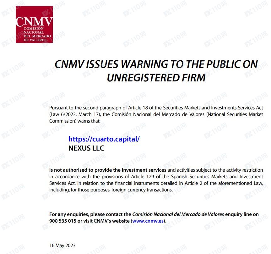 此外,該平臺非法提供金融服務,已被西班牙國家證券市場委員會(CNMV)列入警示,請遠離!