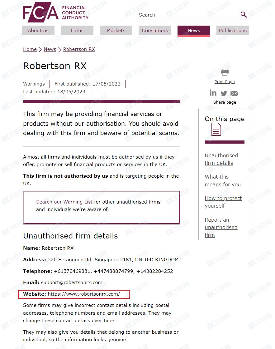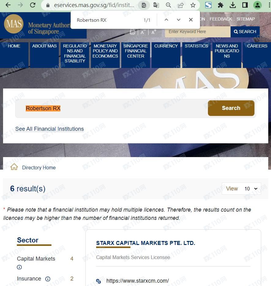 我們依標示位置在新加坡金融管理局(MAS)也查無Robertson RX,確認是無監管的平臺。