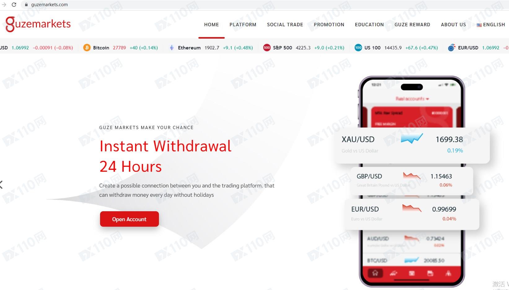 該平臺宣傳提供外匯、大宗商品、加密貨幣、股票等金融衍生品投資交易服務,但并未獲得任何金融監管局的授權許可。