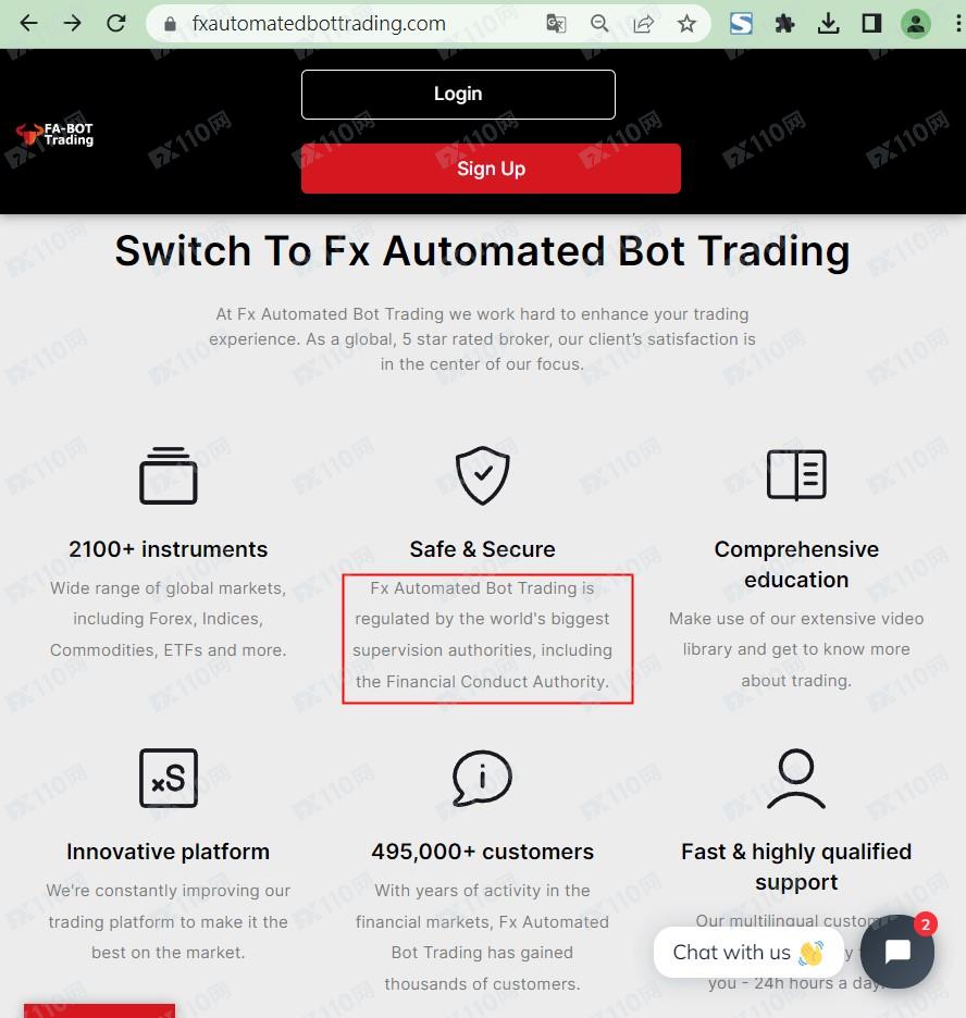 該平臺宣稱提供外匯、股指、商品、加密貨幣等交易服務,Fx Automated Bot Trading受金融行為監管局FCA監管。