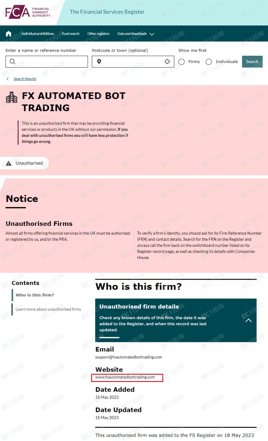 我們在金融行為監管局FCA查到的信息,該公司未經授權即非法提供金融服務,已被列入警示,請遠離!