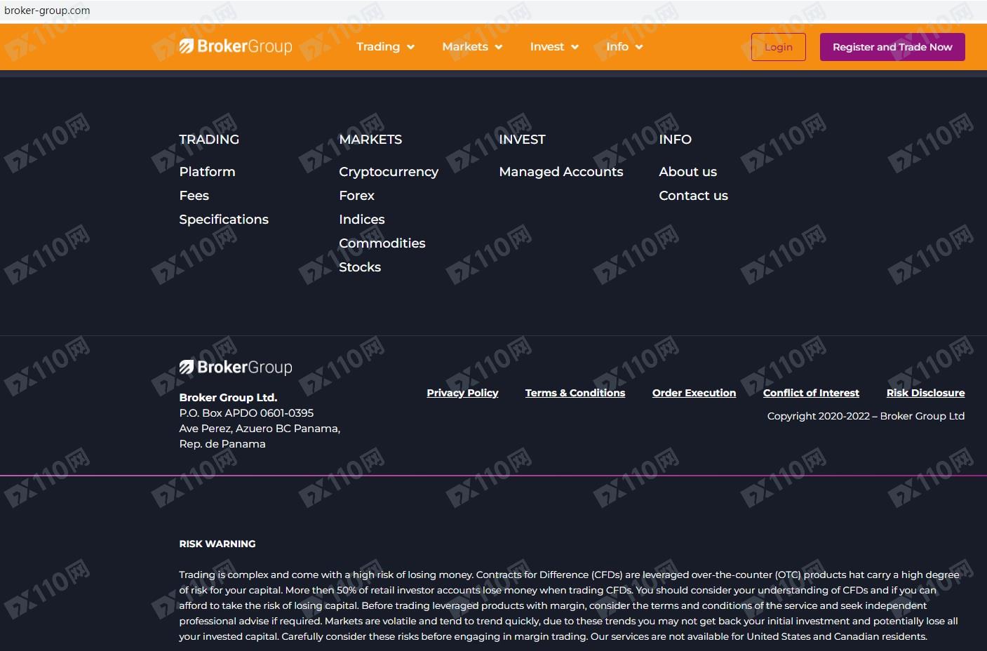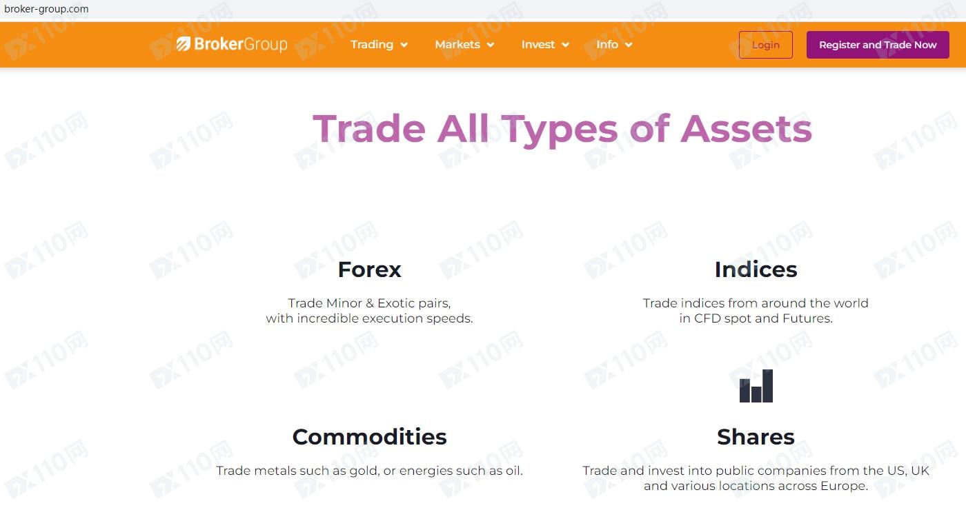 Broker Group平臺宣傳提供加密貨幣、外匯、指數、大宗商品、股票等金融衍生品投資交易服務,但并未獲得任何金融監管局的授權許可。