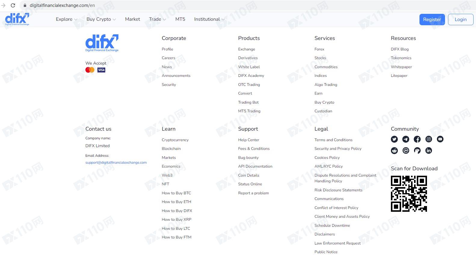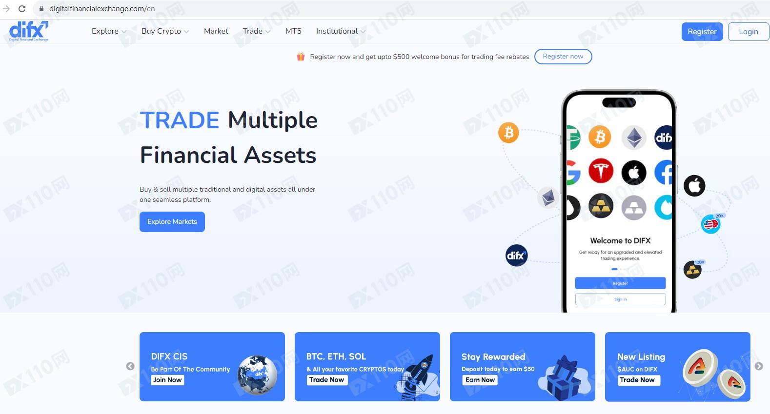 DIFX平臺宣傳所屬Digital Financial Exchange Limited,提供加密貨幣投資交易服務,但并未獲得任何金融監管局的授權和許可。