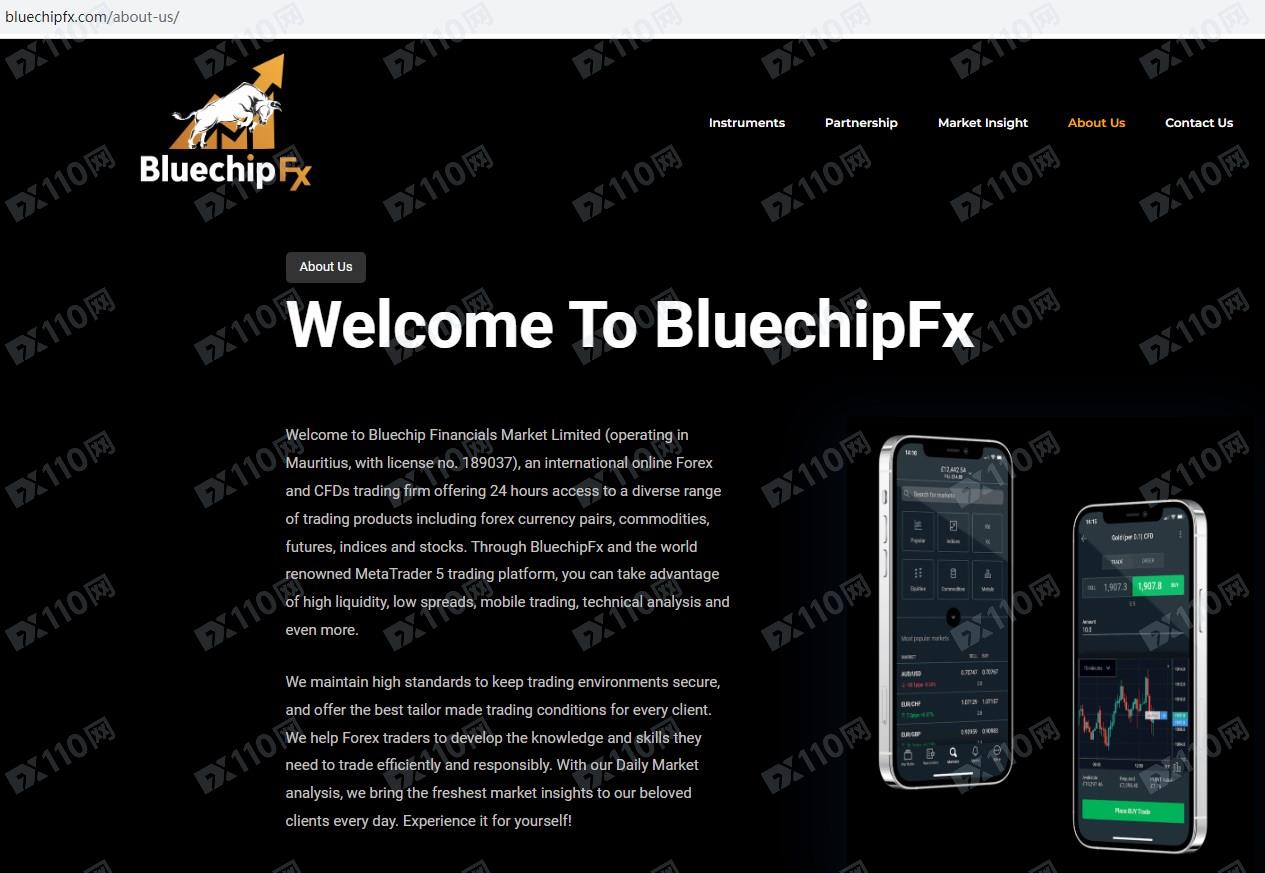 BluechipFX平臺宣稱所屬Bluechip Financials Market Limited,是一家位于毛里求斯的在線交易平臺,提供外匯、差價合約、指數、貴金屬、能源、加密貨幣等金融衍生品投資交易服務。