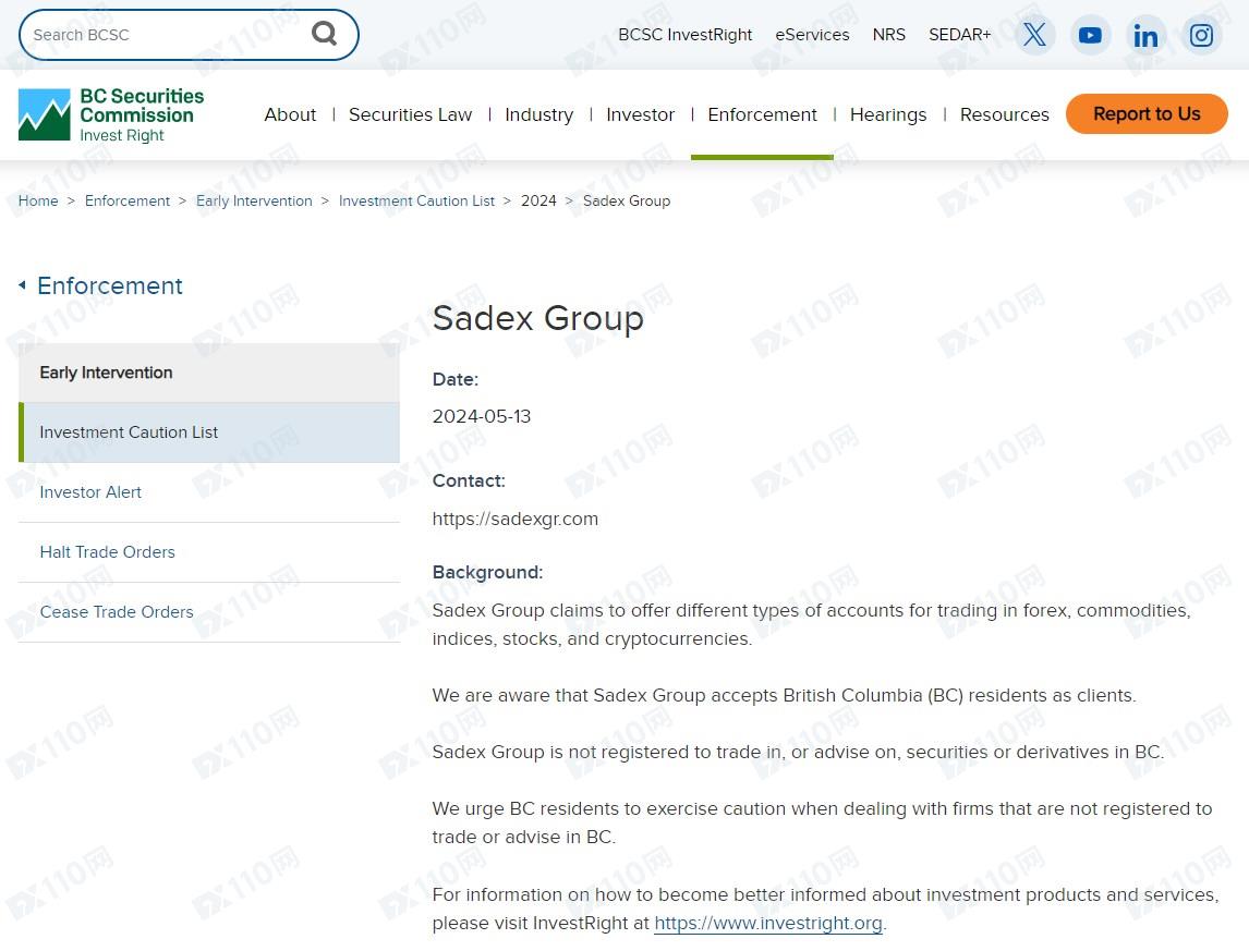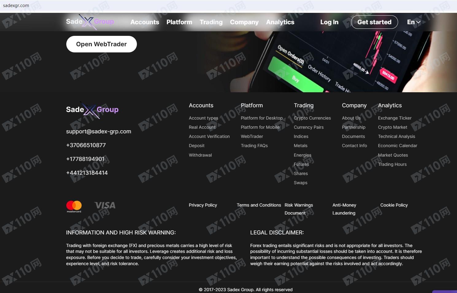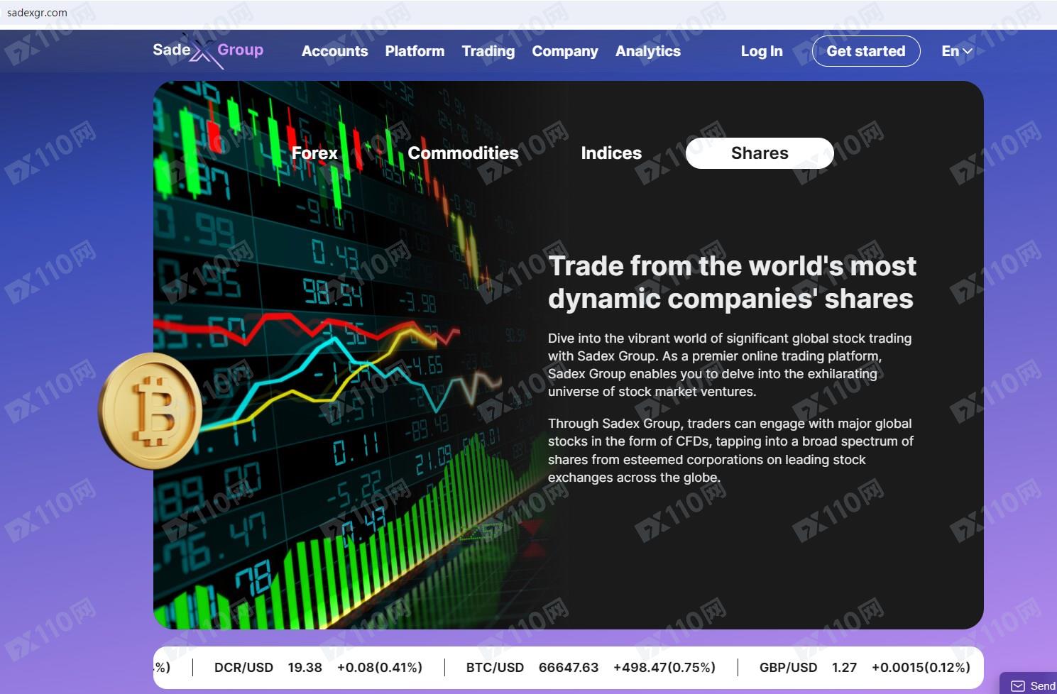 Sadex Group平臺宣傳提供加密貨幣、外匯、指數、貴金屬、能源、期貨、股票等金融衍生品投資交易服務,但并未獲得任何金融監管局的授權和監管。