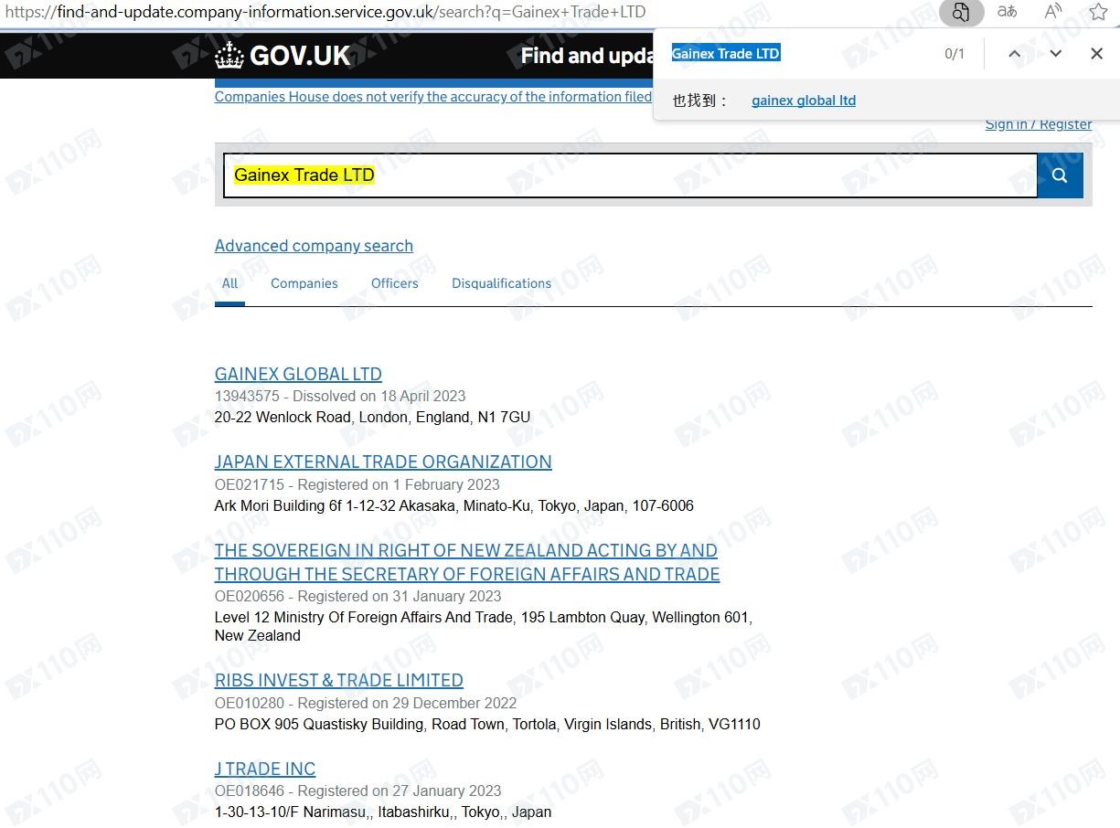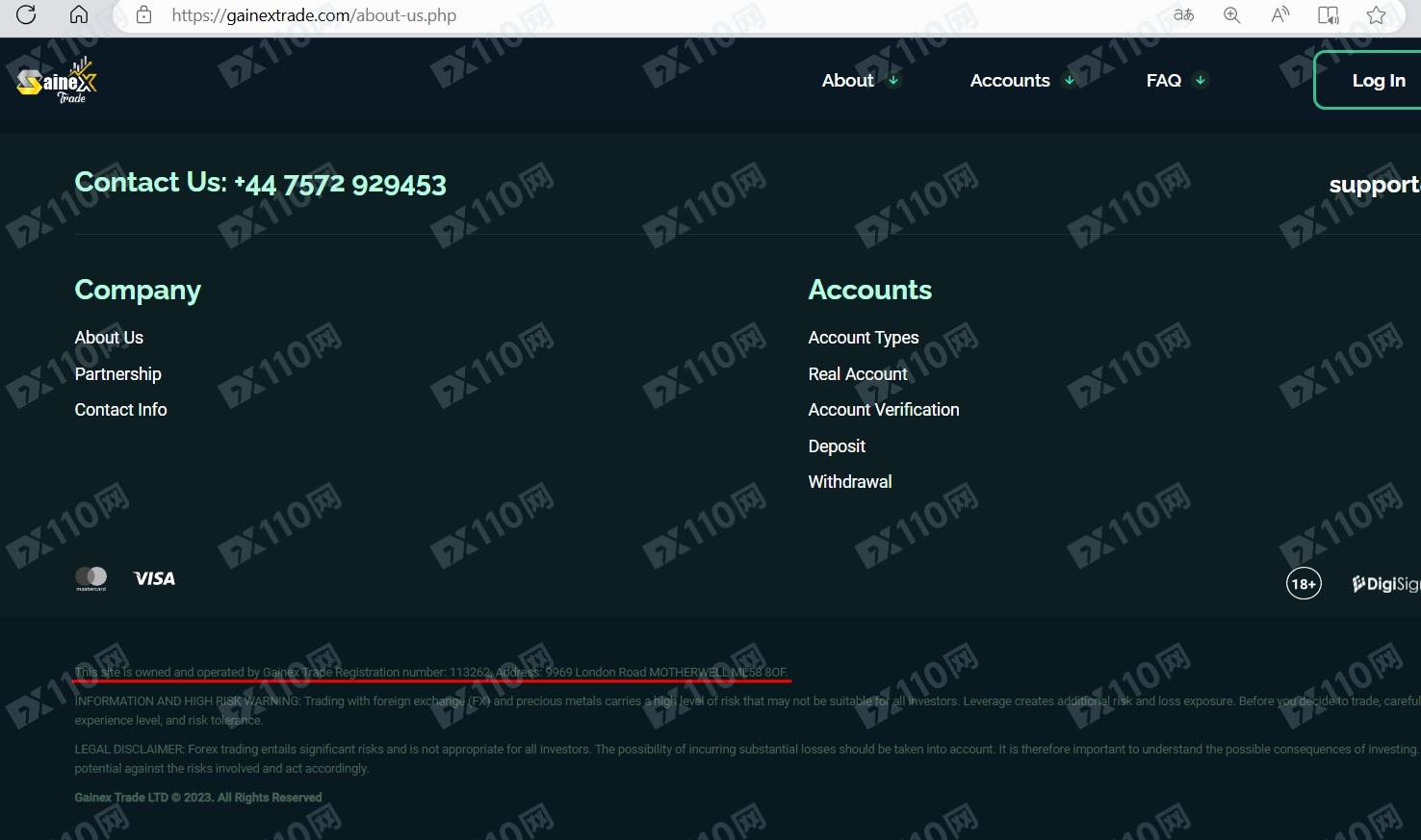 該平臺宣稱提供外匯等差價合約交易服務,由Gainex Trade LTD運營,貿易注冊號113262、具體地址位于英國,但未公布任何監管信息以便用戶核實。